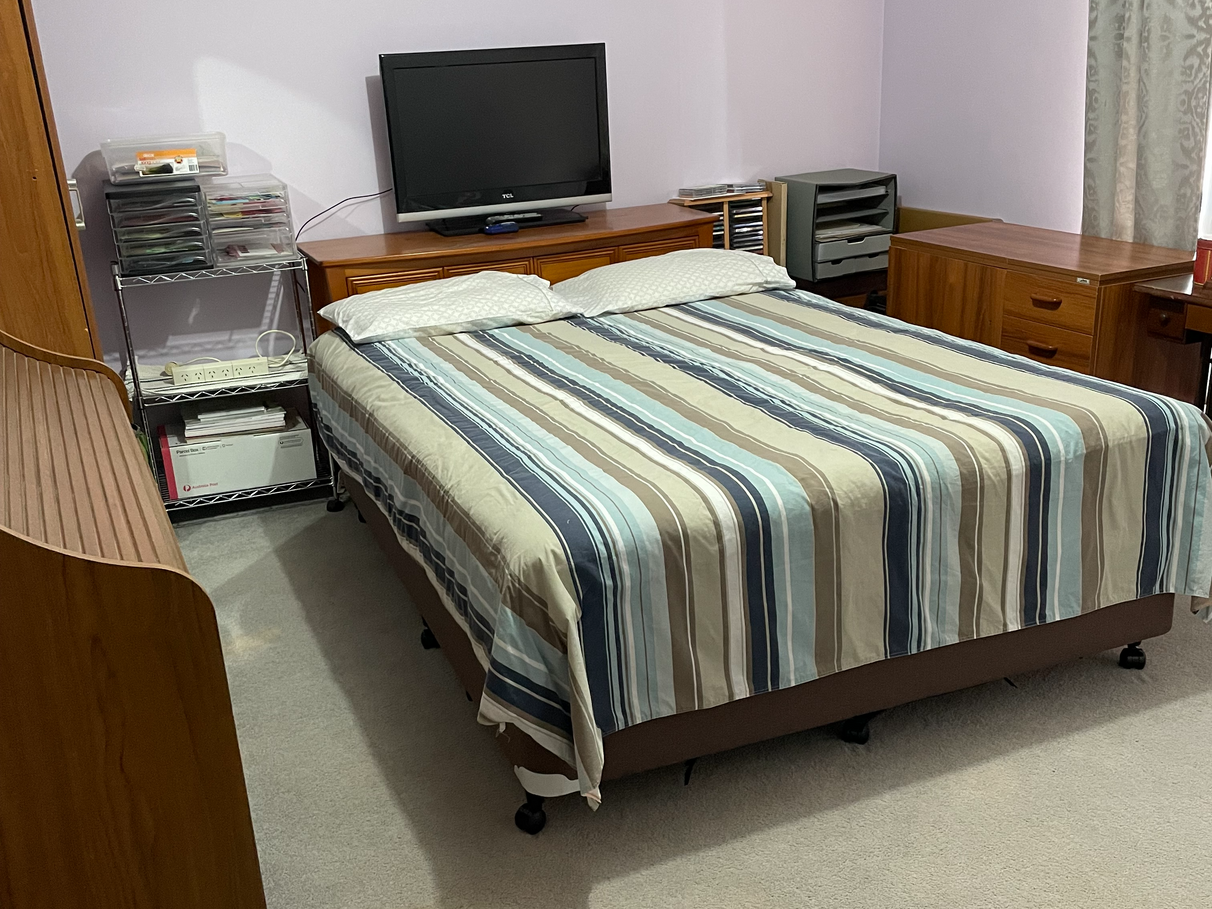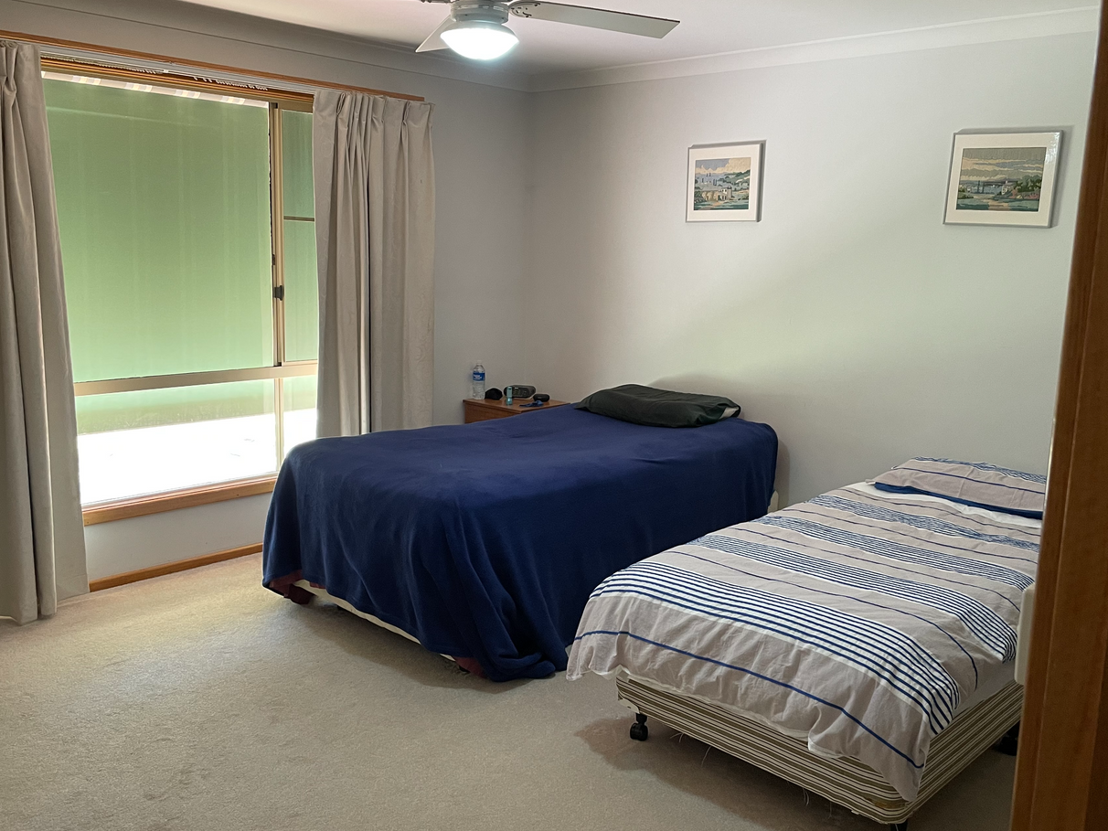 Features include plenty of cupboard and wardrobe space, plus ample power points. All rooms are large and either polished floor board or carpet or tiled. Painted throughout in restful pale green.