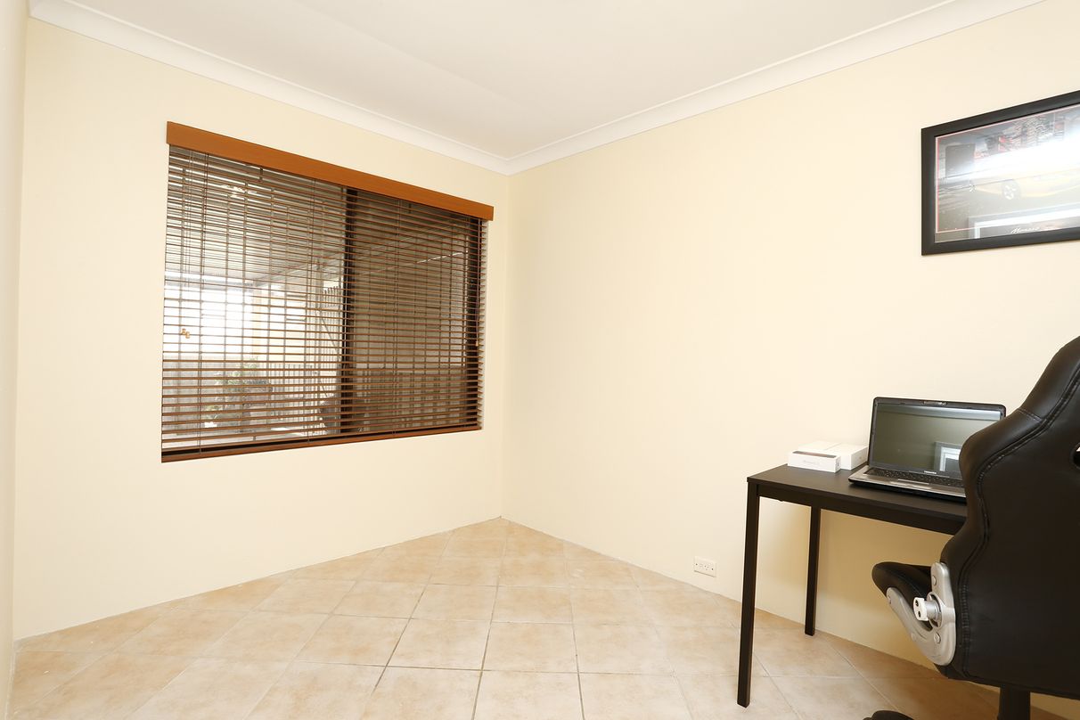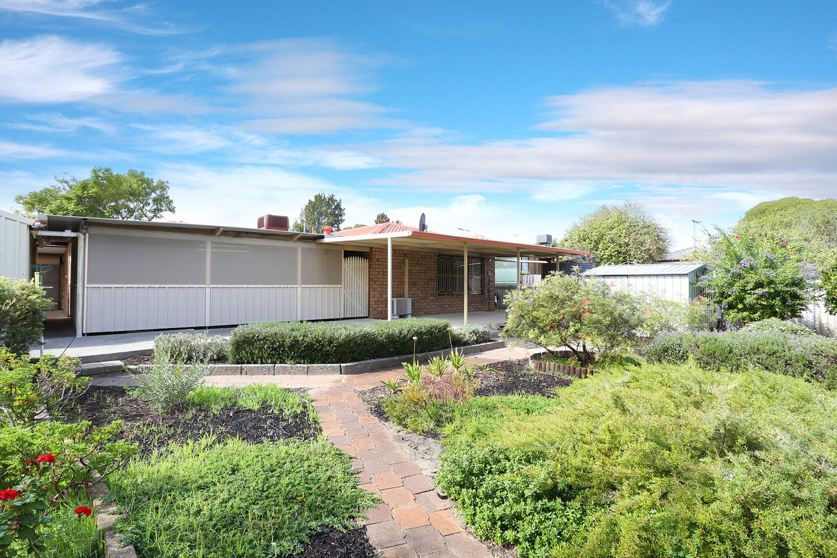 Comprising of three generous bedrooms and a study, serviced by a light-filled central bathroom offering a bath and plenty of storage. There is also a secure carport and single car garage at the front of the home.