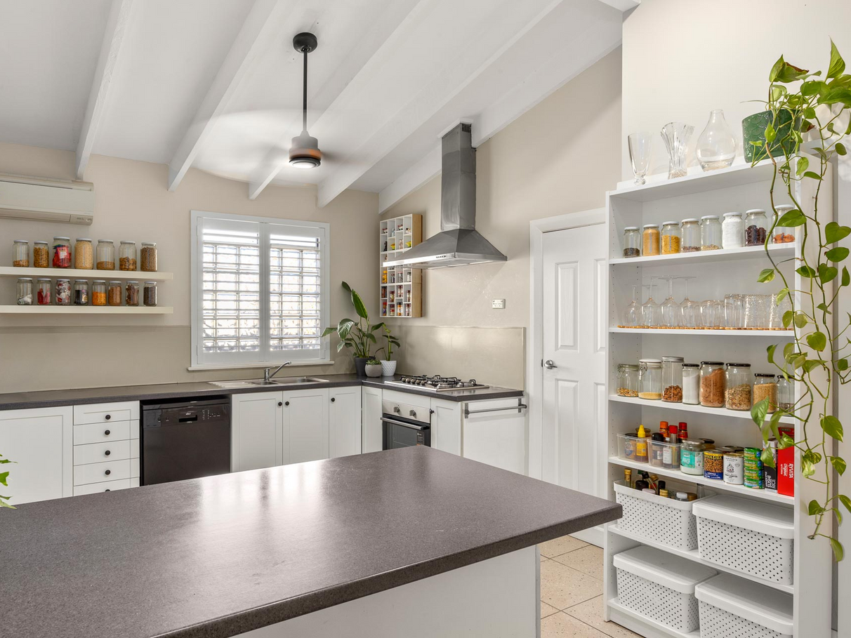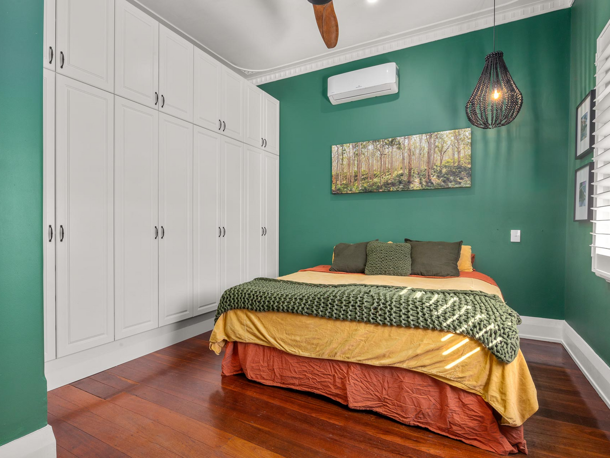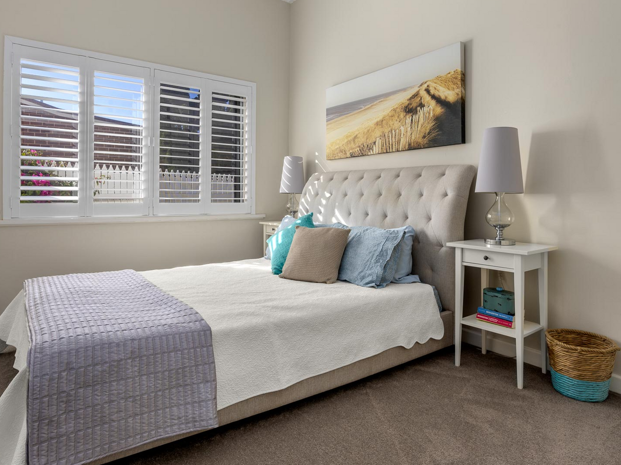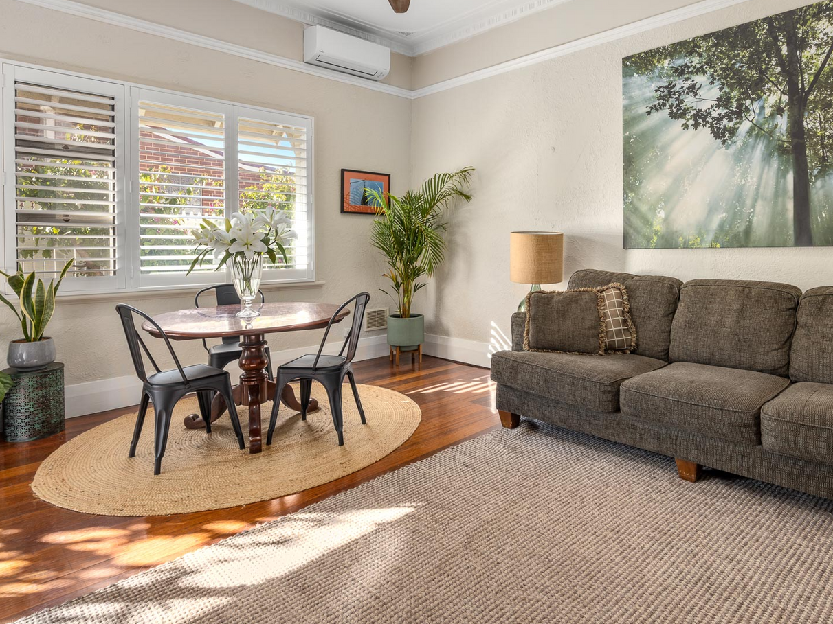 Beautiful jarrah floor boards and plantation shutters