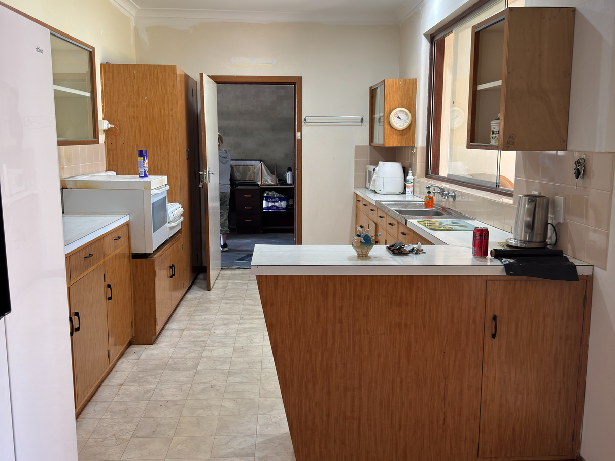 Galley style kitchen with pantry and plenty of cupboard space and shopping entrance to the garage.