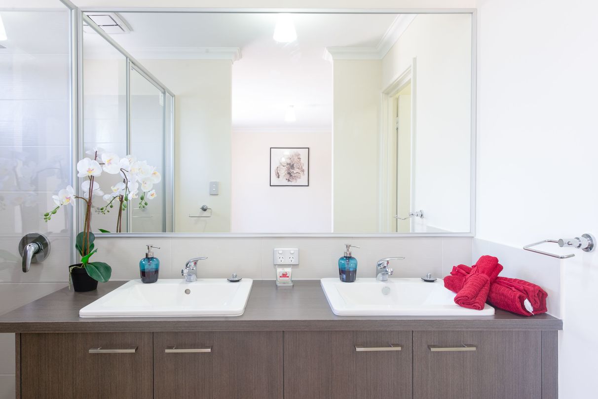 Mirror door wardrobes in each room and