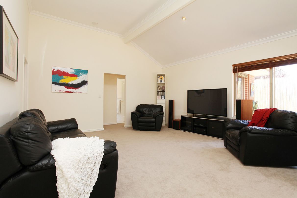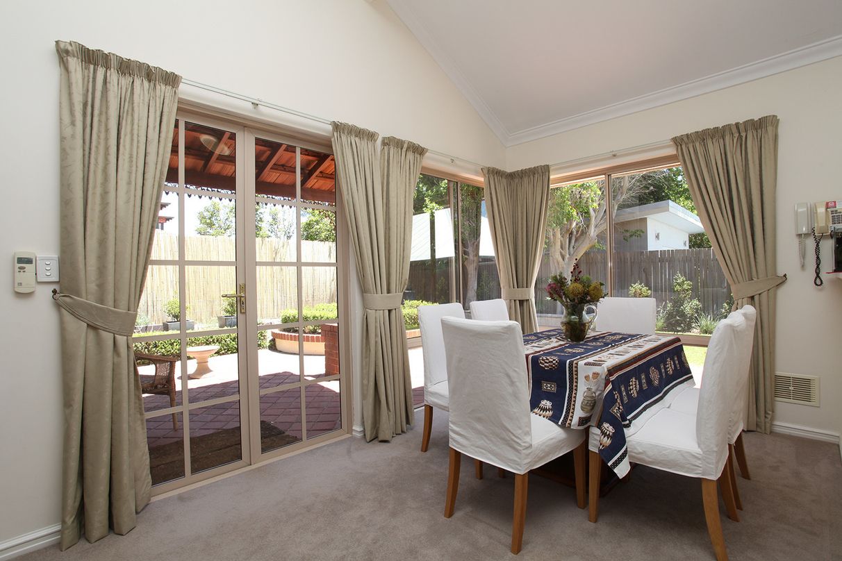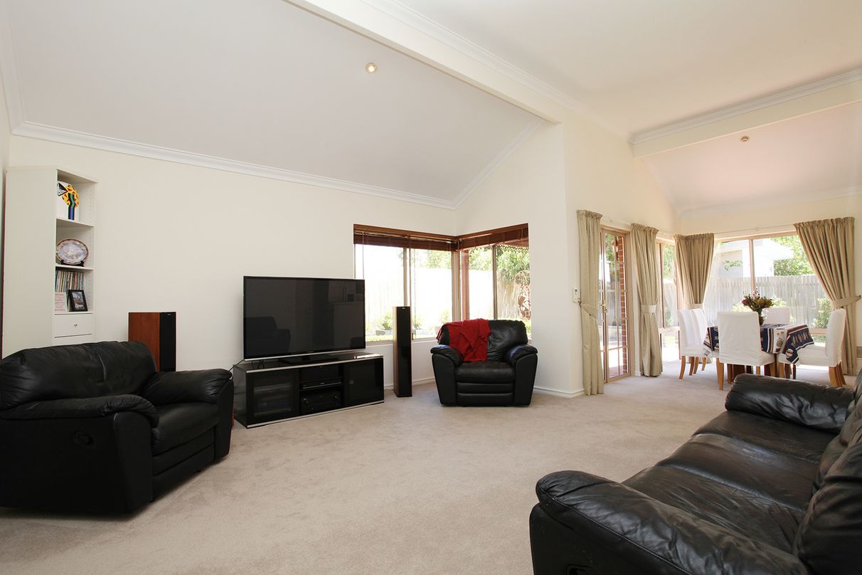Indoor and outdoor living flows seamlessly together through the double french doors leading to the paved alfresco under a generous patio, surrounded by a perfectly landscaped cottage garden and lush lawn area.