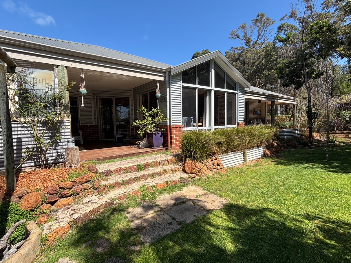 Built in 2012 and beautifully maintained, this spacious Ventura Homes residence captures the essence of relaxed country living in the heart of old Witchcliffe. Set on a generous block with established gardens and views over the Wadandi Trail bushland, this property offers an inviting combination of comfort, style, and self-sufficiency.