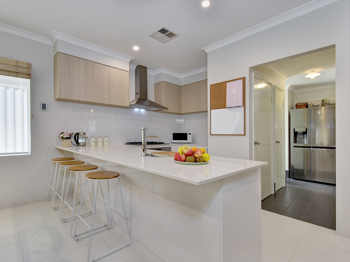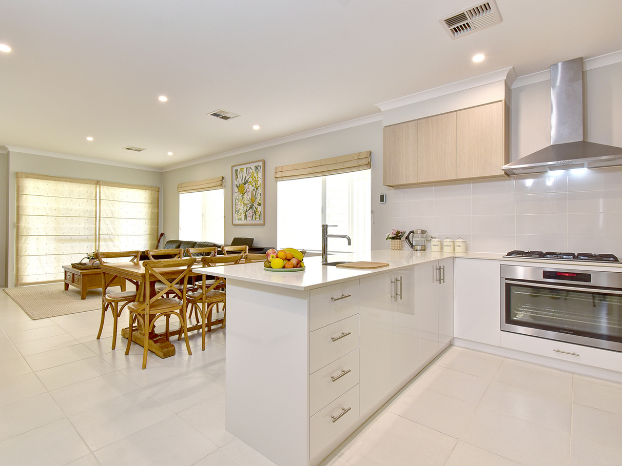 • The kitchen sits at the helm of this lovely, light filled room and features