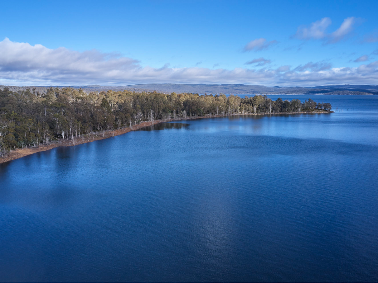 Lake Frontage property for sale comprising of 33.3ha (approx. 80 acres) of pristine forested rural land at Arthurs Lake, Central Highland Tasmania with approximately 1.2km of absolute lake frontage.
