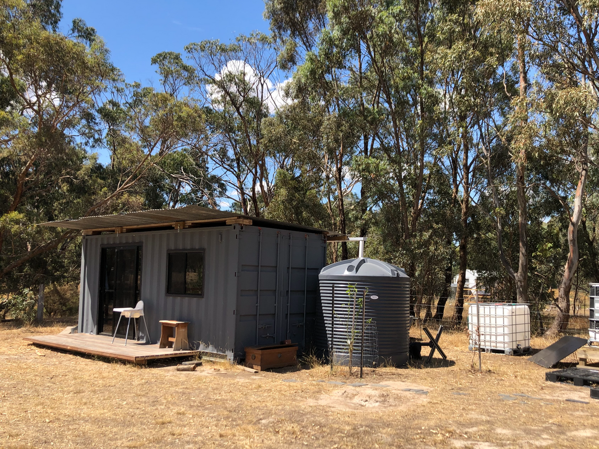 Removeable hut with wood stove and water tank. Fenced on three sides.