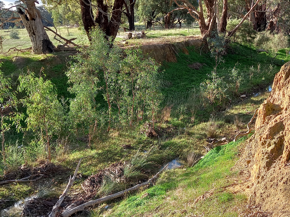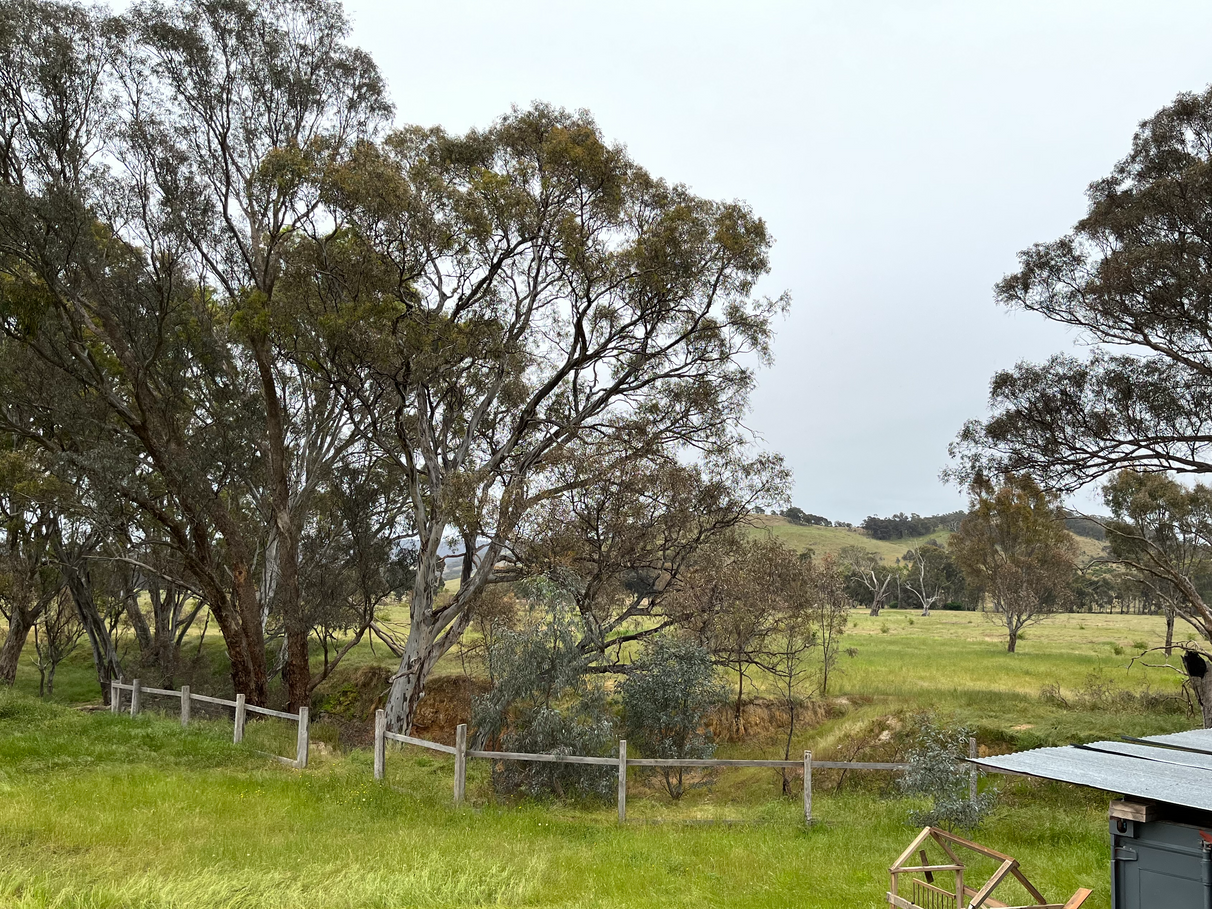 Picturesque and quiet 2.3 acre weekender bush hobby block bordered by the seasonal Redbank Creek. Kangaroos, abundant bird life, mature river gums on two sides.