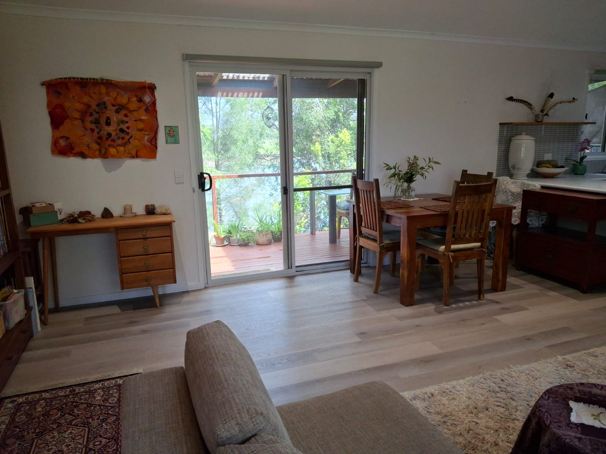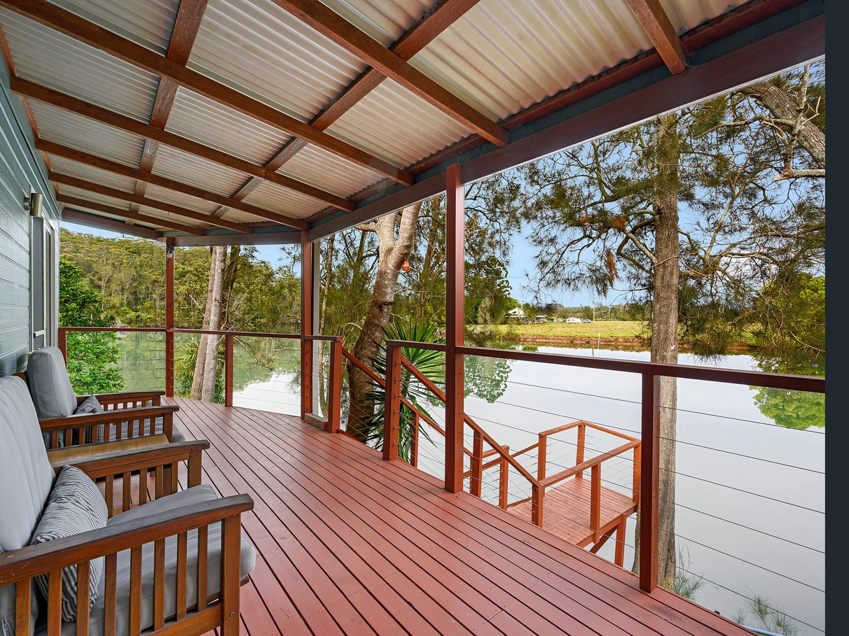 Fish from your own private jetty or enjoy breakfast on the verandah with stunning mountain and Kalang River views across to the cows grazing on Newry Island. Follow the sun from front to back verandahs in winter and the reverse in summer.