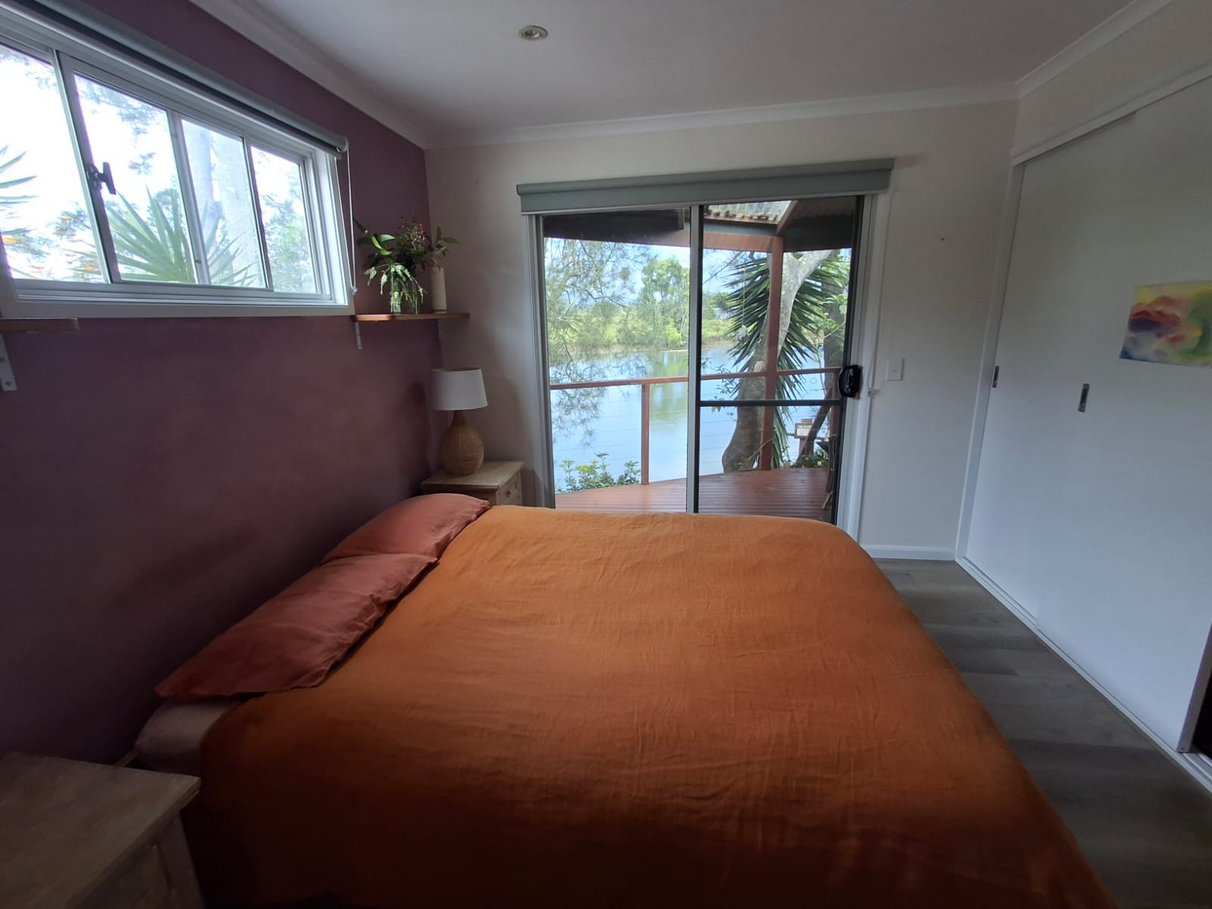 Wake up to the sound of the crested pigeons, wattle birds and rainbow bee-eaters in the Banksia trees on the riverbank just outside your bedroom window. Sip your morning cuppa in bed with views of the river.