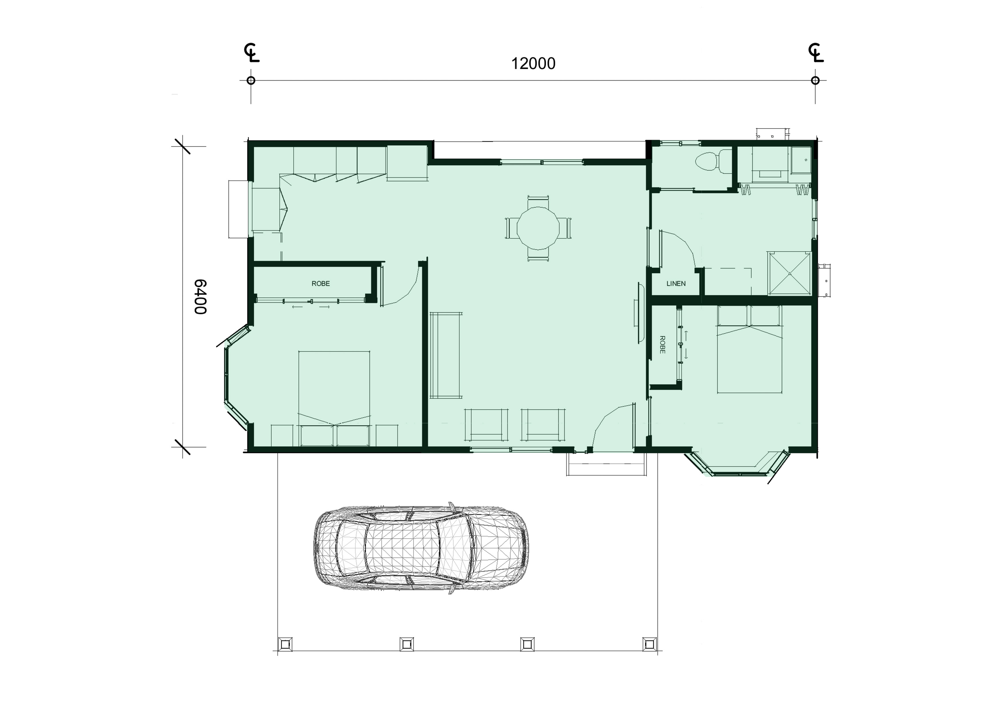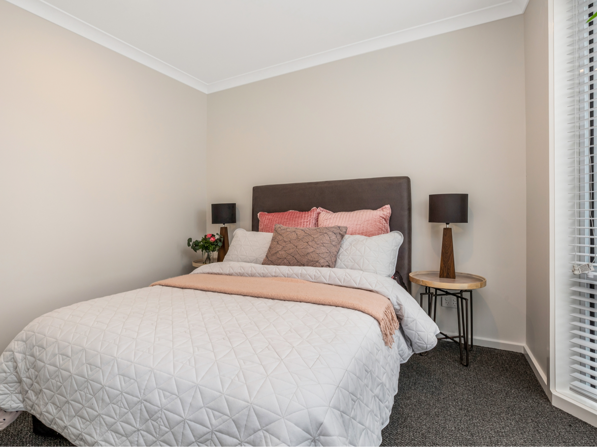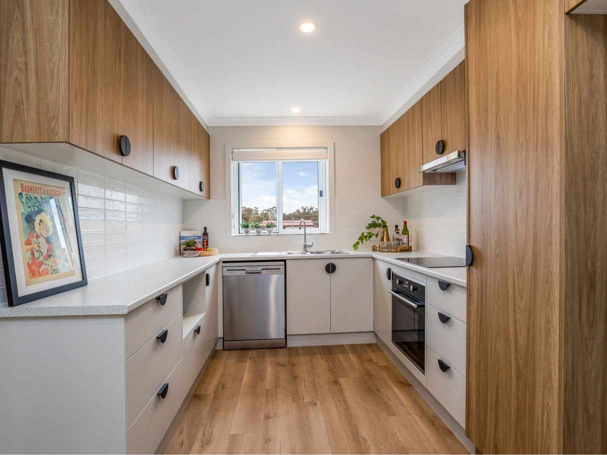 The Garland stretches across the site and features and easy care landscaped garden with front veranda, two bedrooms with built-in robes, a generous U-shaped kitchen and a large open plan living/dining area.