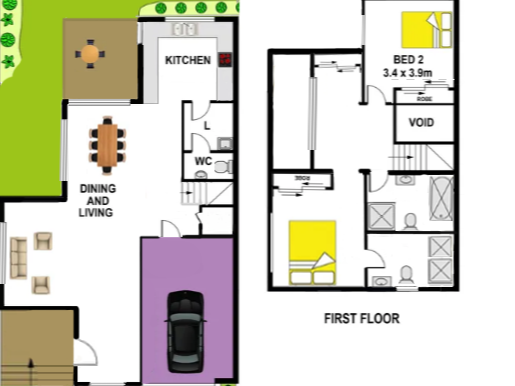 • The ground floor showcases a northeast-facing open-plan living and dining layout, flowing effortlessly to the private courtyard.