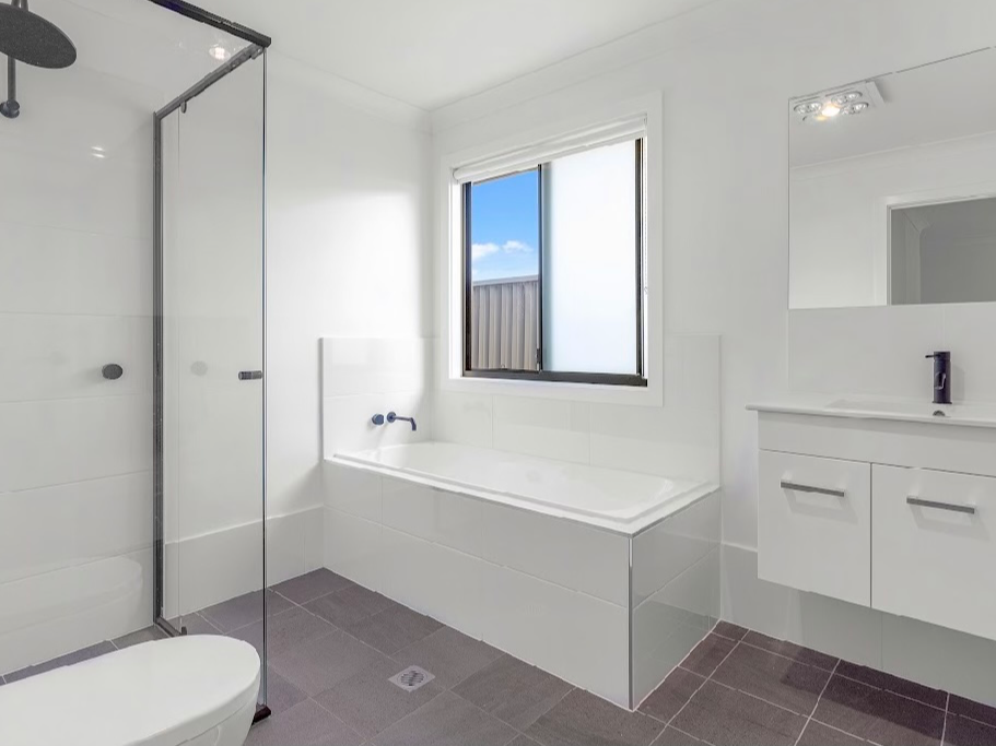 - Modern bathrooms, with Matte black tapware and an internal laundry