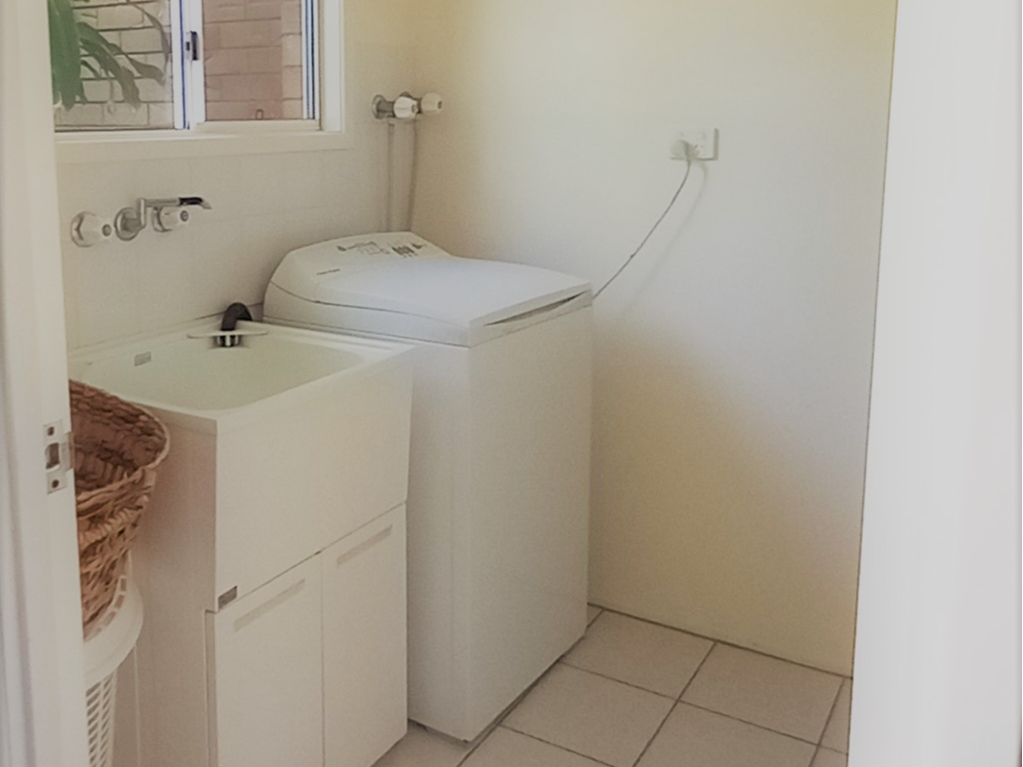 garage, makes the perfect hideaway for kite boards and beach gear. A full linen cupboard is available in the laundry to accommodate the extra linen and towels for guests.