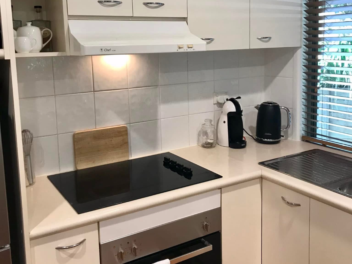 The hallway leads to an open-plan area with the fully equipped Kitchen including a large pantry, wall mounted eye level crockery cupboards, ample worktop space with cupboards underneath, a microwave oven, fridge/freezer, conventional electric oven with separate four ring electric cooktop, double sink and drainer, dishwasher and plenty of drawer space.