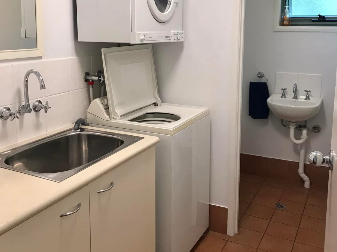 The Laundry is off the hallway which then continues on to the kitchen. The Laundry contains a washtub with cupboards underneath, a top loader washing machine and a wall mounted tumble dryer. A separate third toilet and small hand basin is off the Laundry. Washing line is situated at the front of the property, handy and neatly concealed beside the front entrance.