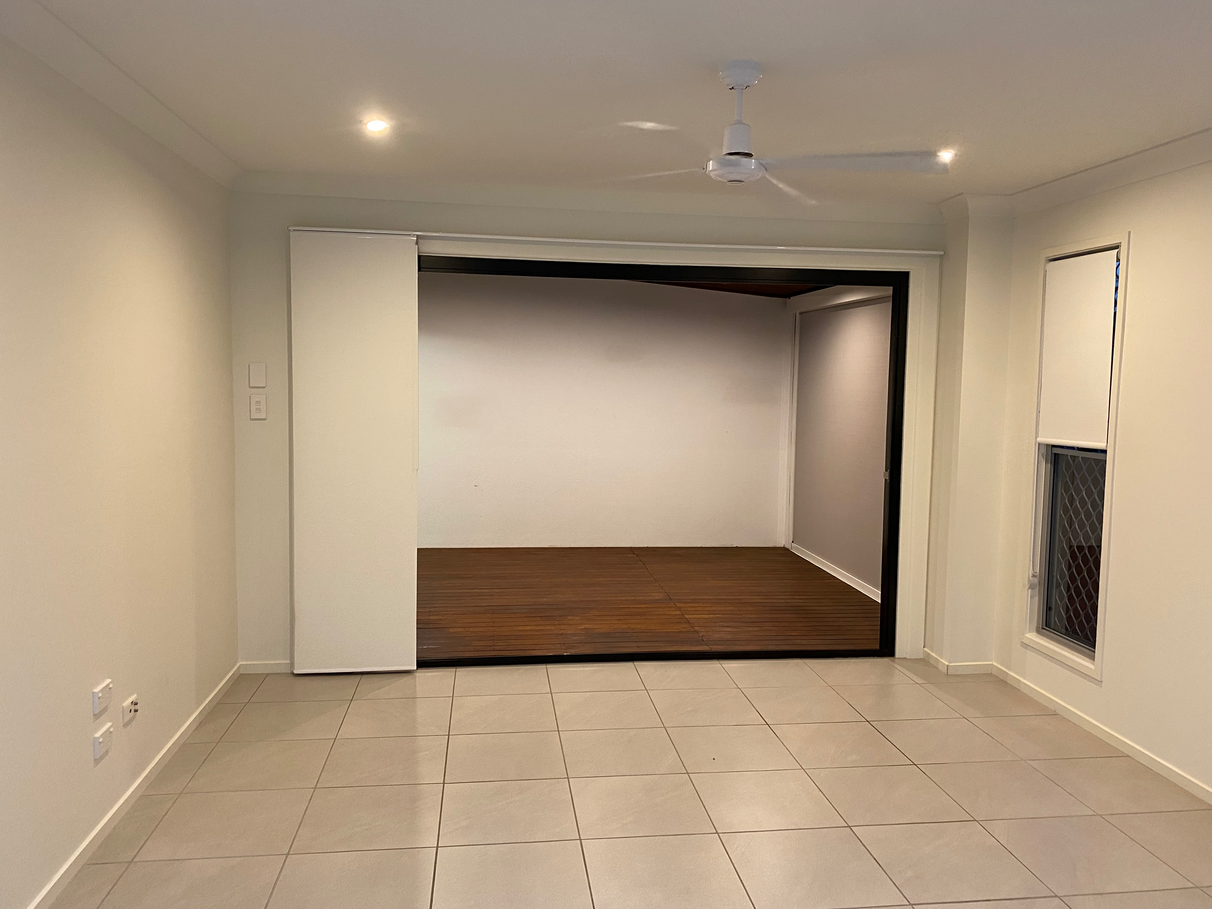 - Fenced courtyard alfresco space with timber decking and remote-controlled screen