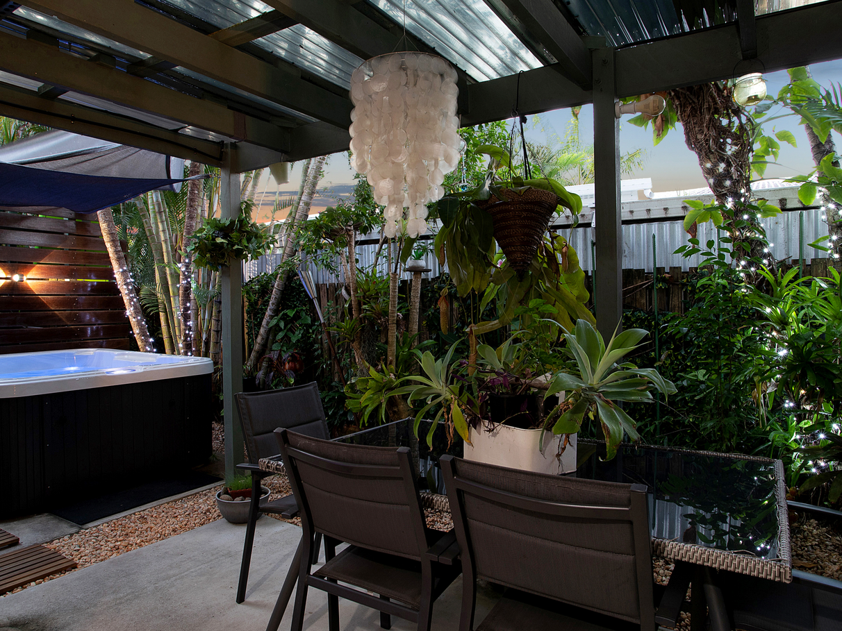 This beautiful townhouse features a quiet and private tropical garden with an automated watering system and is protected by full security including an electronic door lock. Come home, relax in your outdoor spa all year round, and enjoy the most comfortable and easy living in the City. The spacious living area of this home extends into the tropical garden through the large, three panel sliding door, creating the ultimate entertaining space.