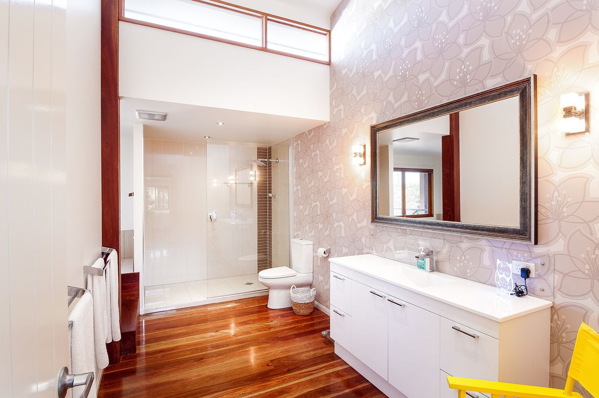 Luxury master retreat opening to a private balcony with walk-in robe and designer ensuite. Each bedroom is as sizable as the master, affording huge retreat spaces and a private balcony from bedroom two. The main bathroom with a luxurious step-up spa services the upper level, and on the lower level, bedroom four has it’s own ensuite and private outdoor area. Perfect for guests, live-in relatives or teens!