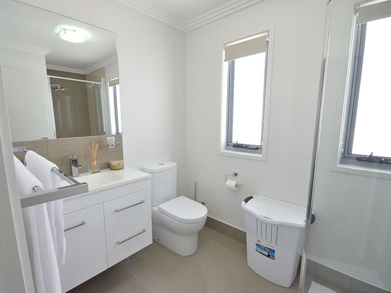 • Main bathroom with shower bath combination, separate vanity and toilet