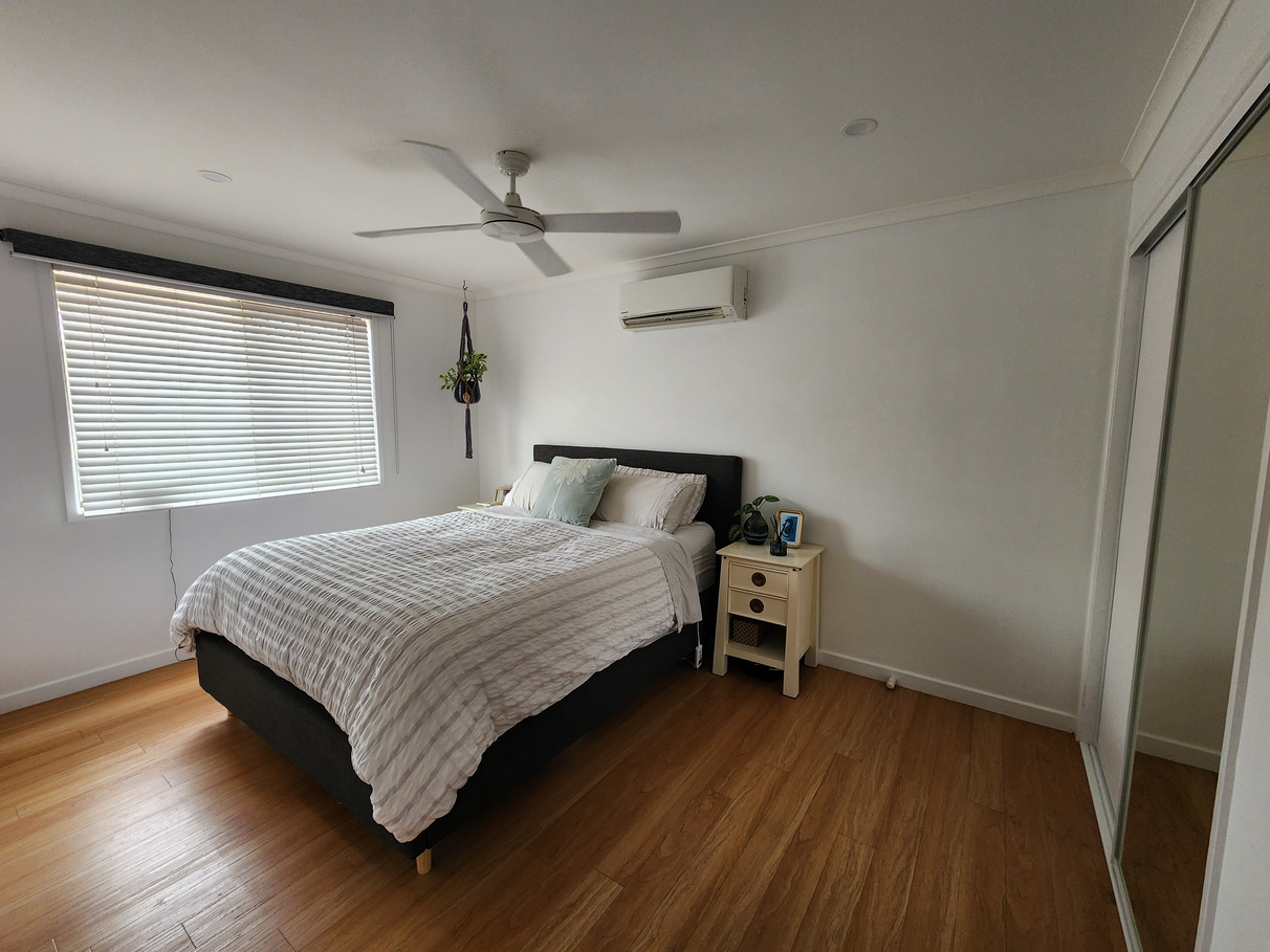 The main bedroom is larger than average, both come with sliding wardrobes fans and enjoy the afternoon bay breeze.