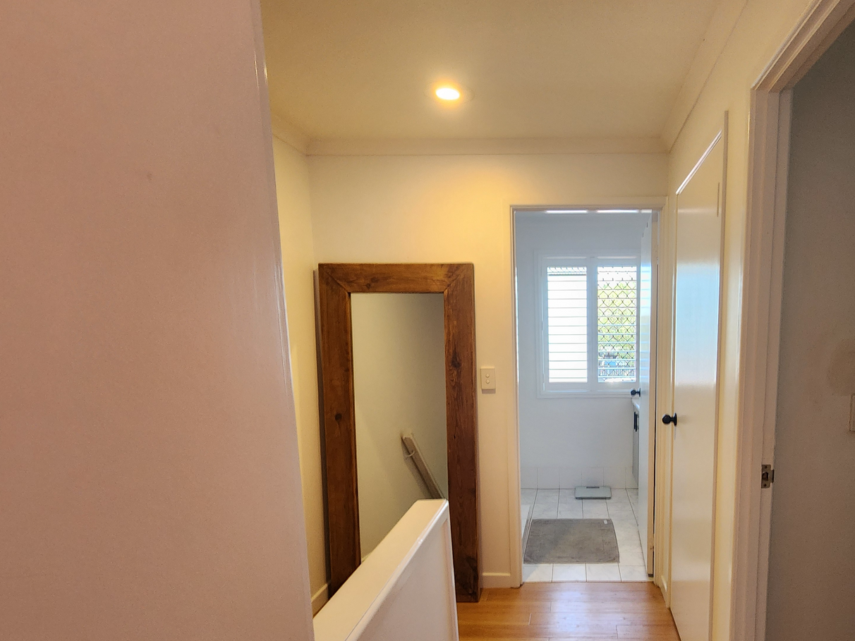 The upstairs bathroom has a shower and toilet and there is another toilet in the laundry area downstairs.