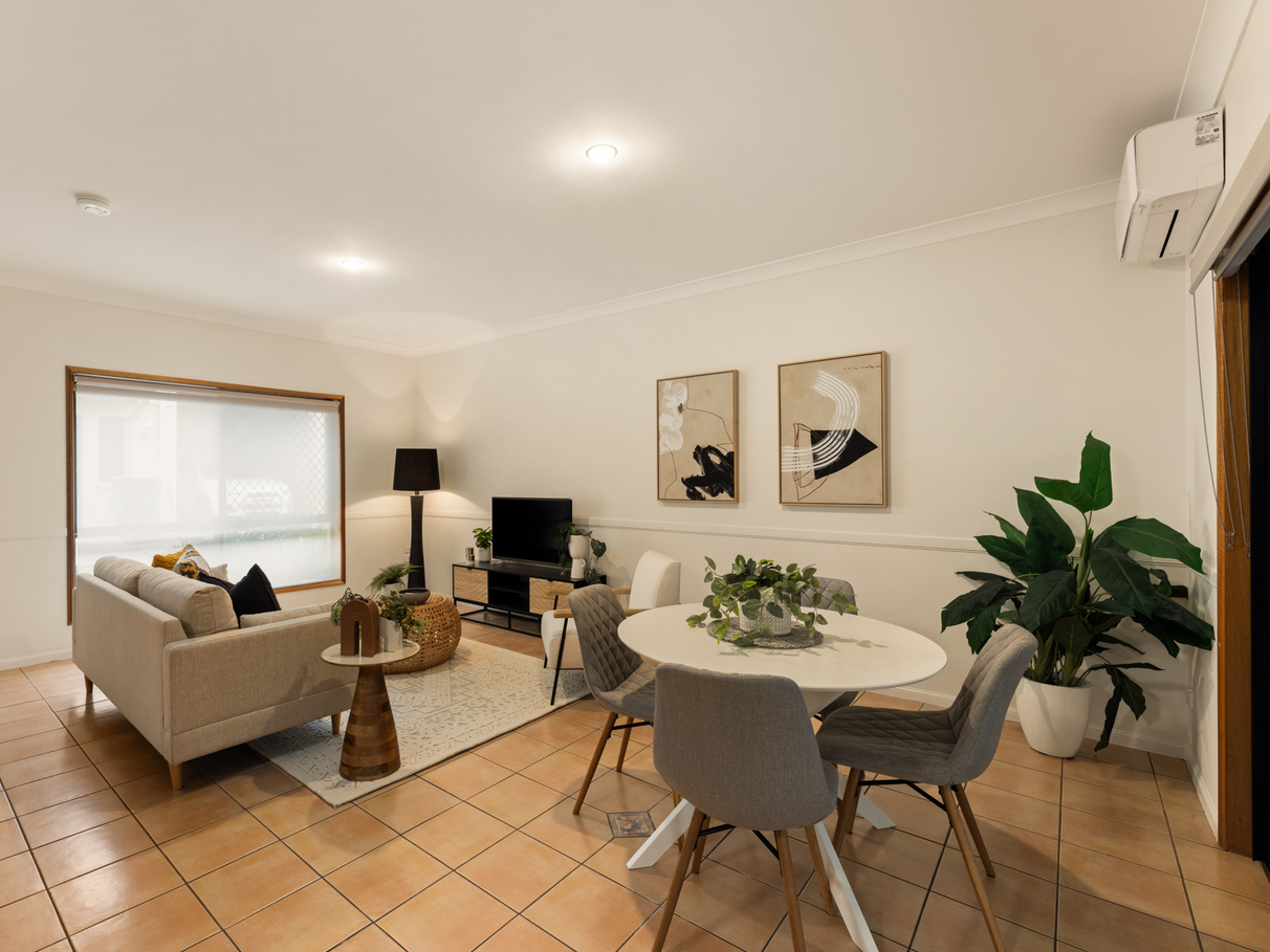 • Open plan living and dining area overlooking the patio and easy care courtyard