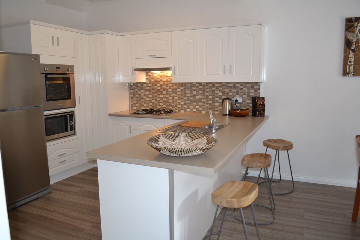 Refurbished kitchen provides gas cooking appliances and ample cabinetry, new bench tops, breakfast bar, range hood and dishwasher. Adjoining casual dining area open’s to the rear, granite paved court yard, providing a stylish relaxed area to entertain.
