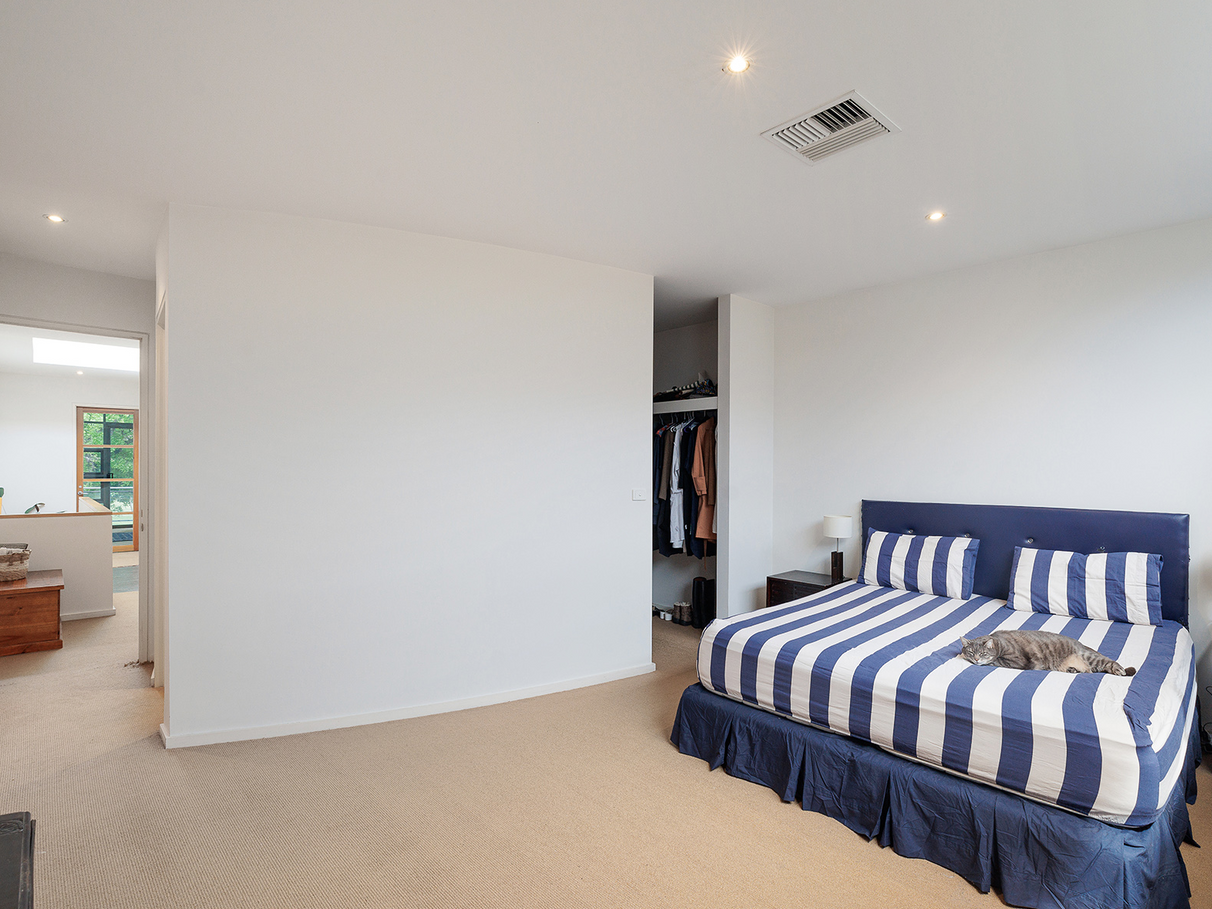 The upper level includes a sleek temporary design, highlighted by warm carpets. The large lounge boasts curved 3 metre ceilings and full length windows offering peaceful views over the parklands - the perfect place to unwind. The master suite is spacious with large high windows offering plenty of light and privacy, complete with walk-in wardrobe and luxurious ensuite.