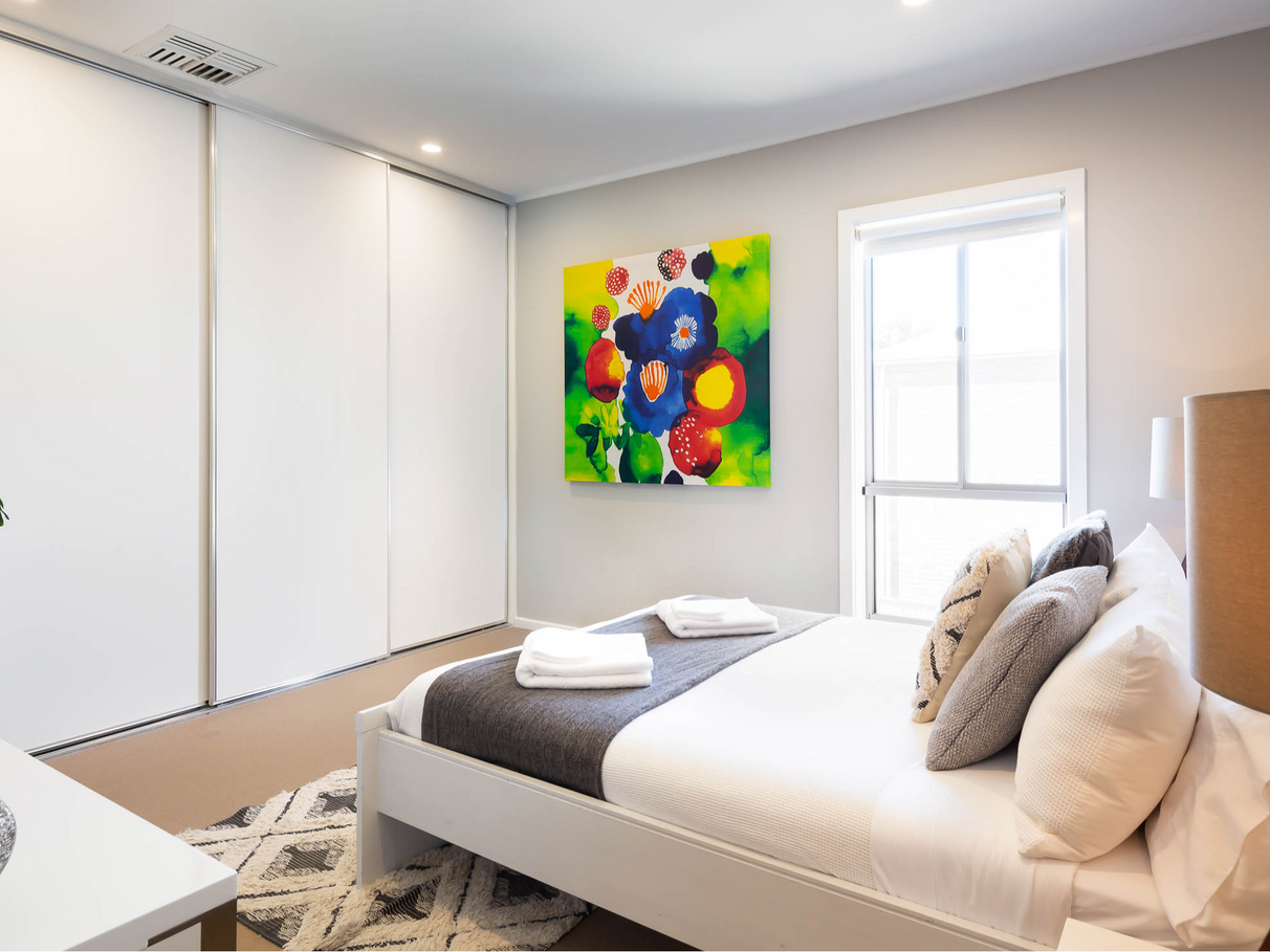 ⭐Front Master Bedroom (Level 2) 1 Queen Size Bed with double vanity ensuite including a bath, smart TV to watch your favourite shows and a luxurious walk in robe room with plenty of hanging room.