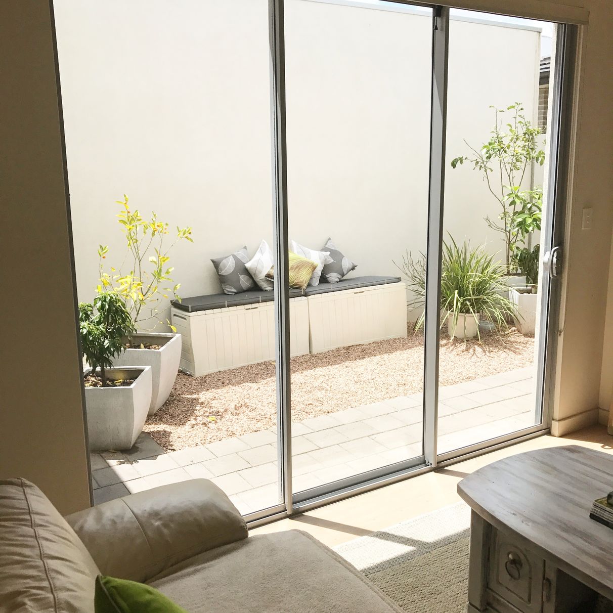 There are 2 bedrooms, both with spacious mirrored built-in robes, & each having a large window, one overlooking the well lit courtyard filled with fruit trees.