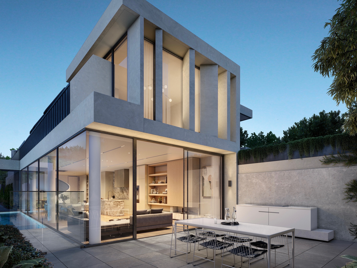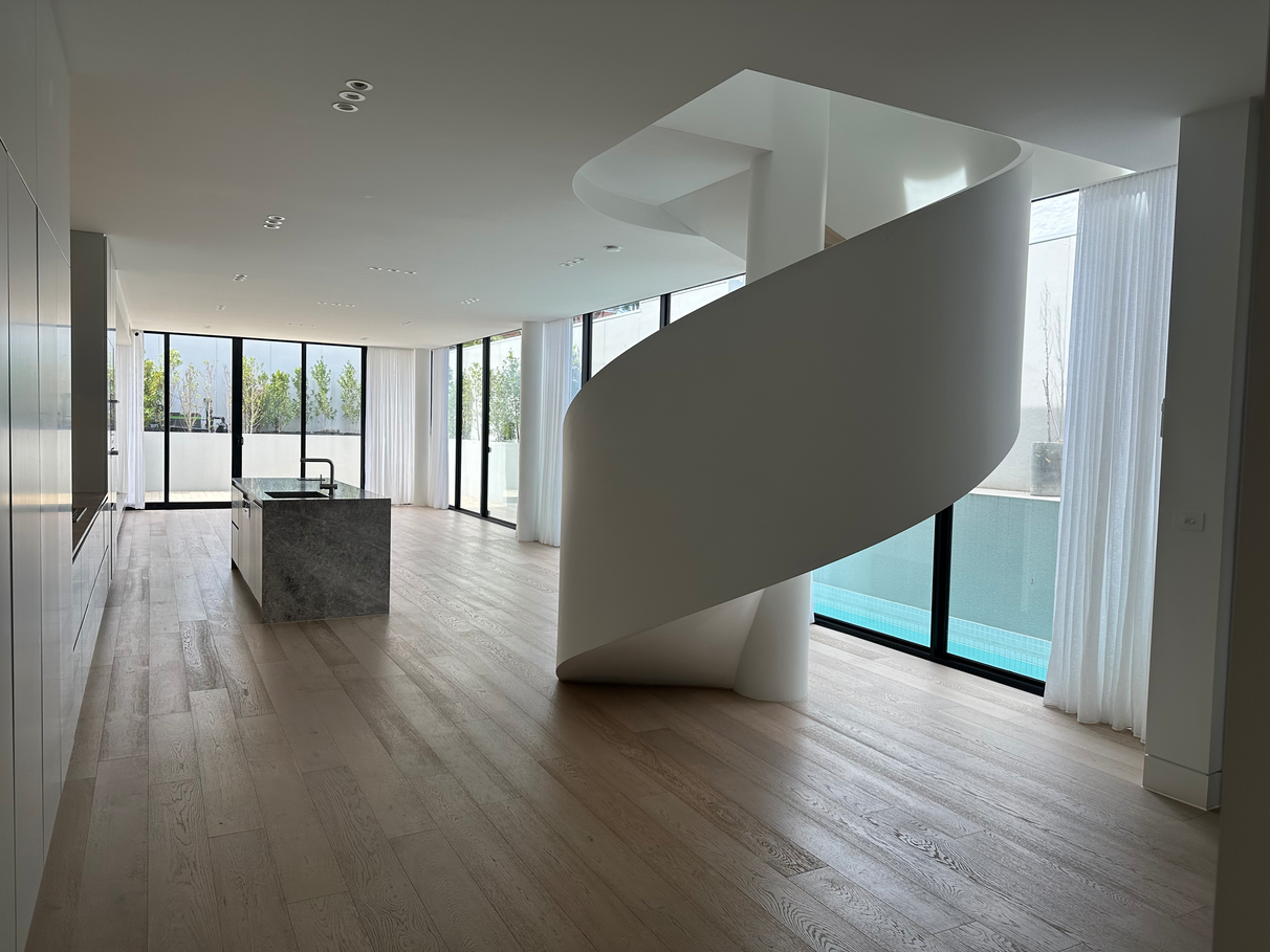 This new family home features wonderful sense of large space and light, underpins by such features as full view from front to back across the swimming pool, extensive use of full height windows, and the magnificent spiral staircase. High end finishes, large open plan living with beautiful fireplace, easy care outdoor area, open living and 5 bedrooms (plus study) each with their own bathroom, combine to create a prime lifestyle family offering moments from the best schools.