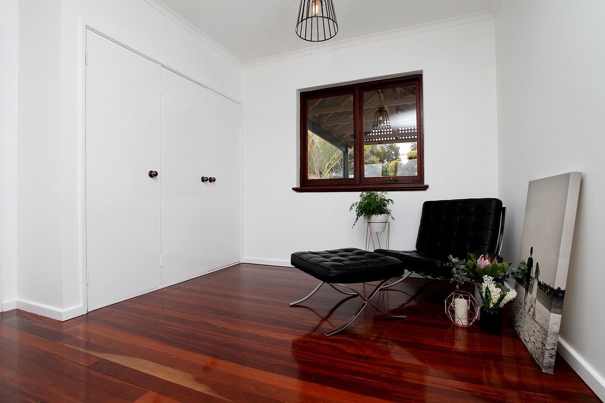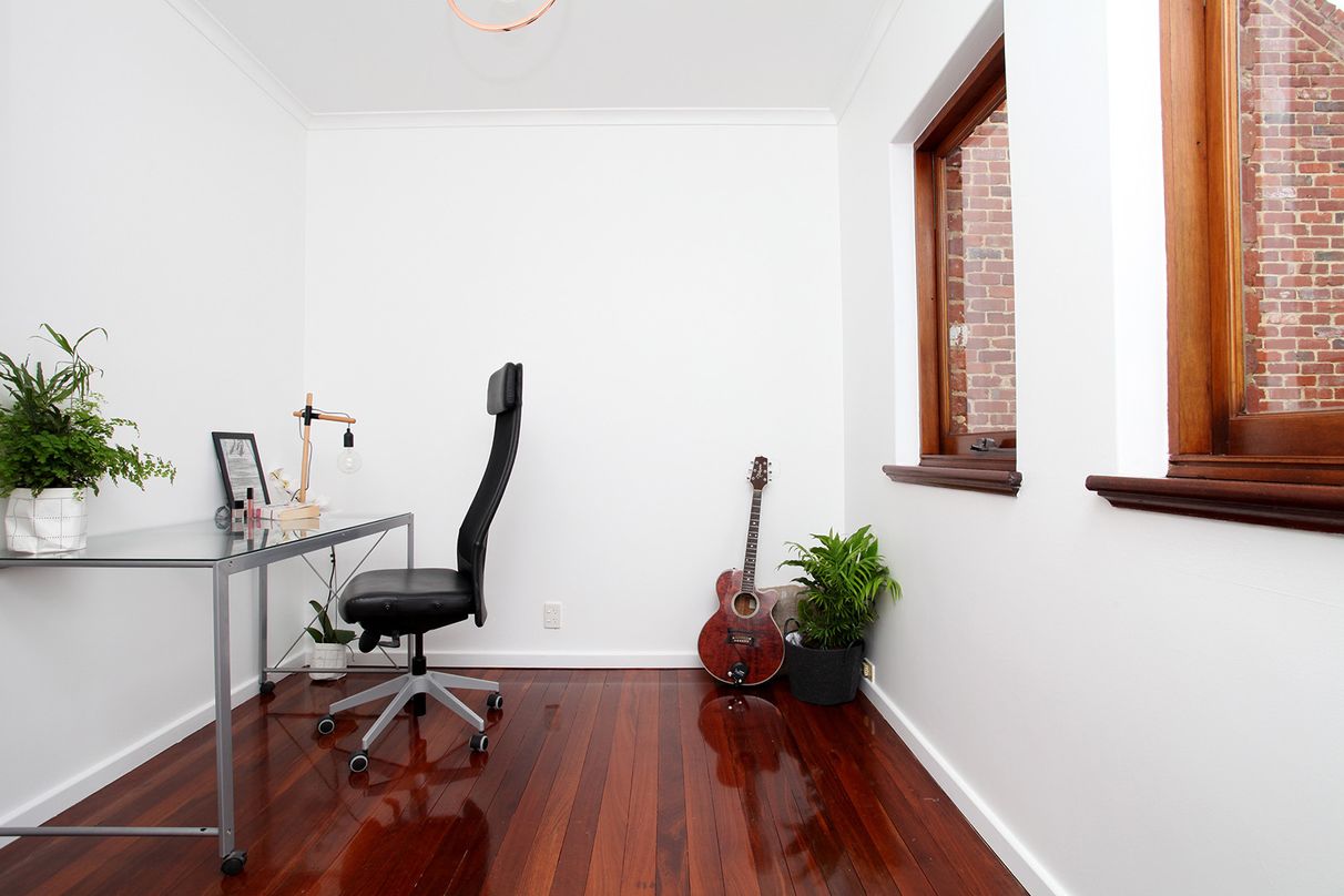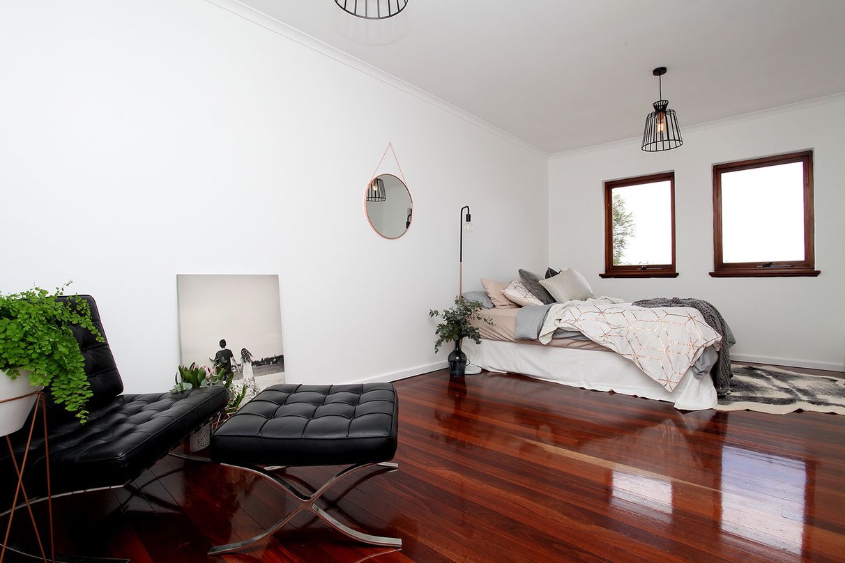 The master bedroom is an exceptional space indeed. With beautiful sunlight streaming in from all angles, this bright, cheerful room with jarrah flooring and large built-in-robes, has space for its own retreat, office space or dressing room and is right next door to the bathroom. Two further bedrooms also occupy the upper level which, interestingly, is at street level.