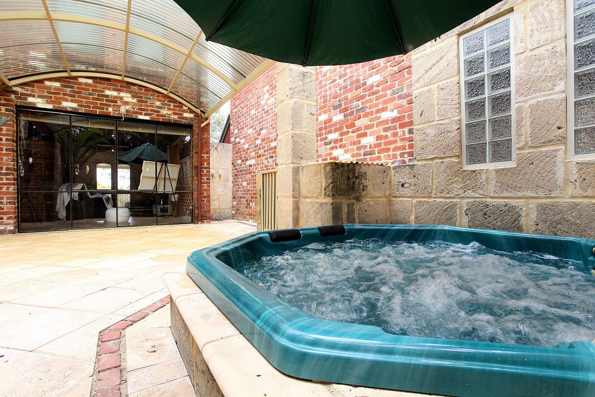 A cleverly crafted front courtyard has been carved from the limestone edifice of the land, creating a cool, shady entertainment area with an outdoor spa and shower, just perfect for summer fun. The rear features a well-built, clear panel pergola and wooden deck (accessed via French doors) which, as it faces east, is perfect for dinner parties and relaxing morning breakfasts.
