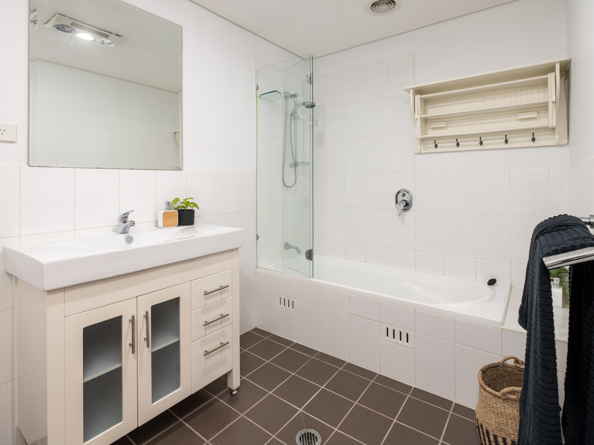 - Main bathroom with shower over bath.