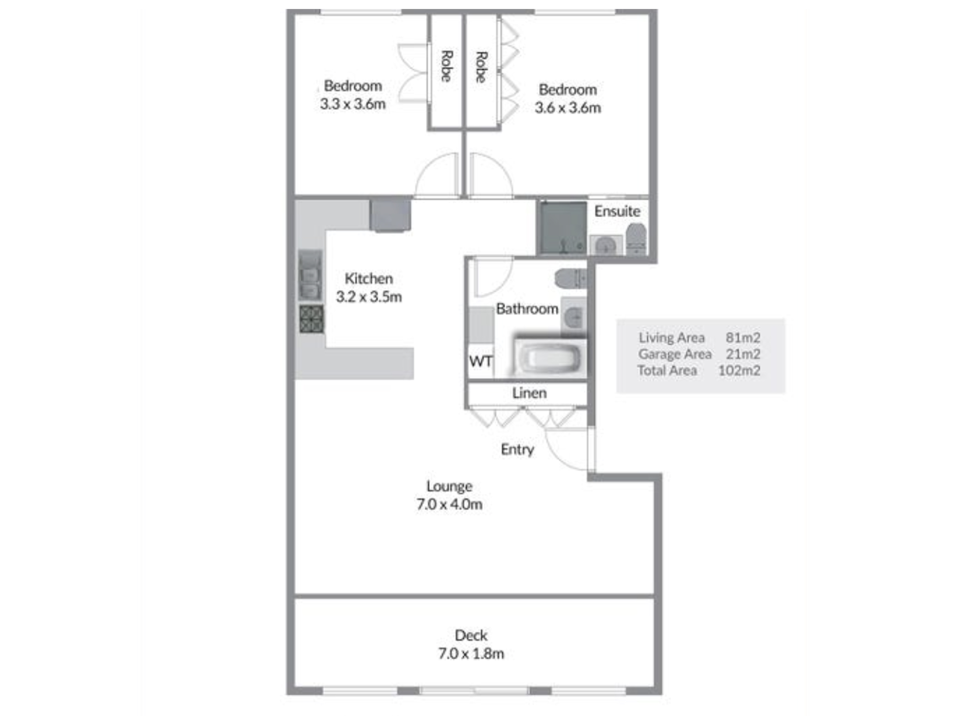 • Two large bedrooms with built-in wardrobes ( En suite in main)