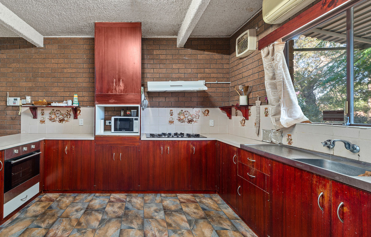 Practical kitchen with gas cooking with plenty of storage, a gas cook-top and under bench oven