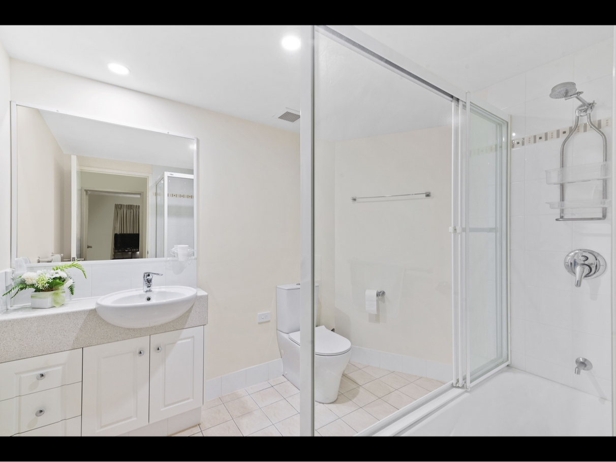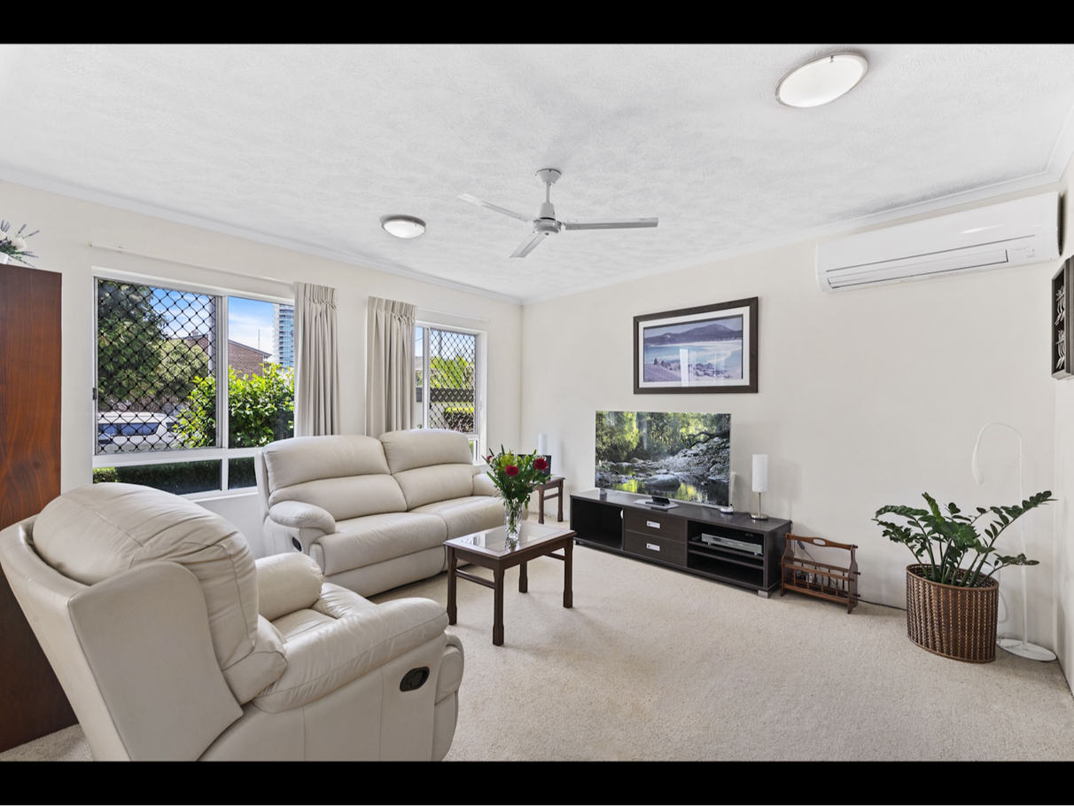 This ground level, end unit, is situated in a secure and well maintained small complex within 350m walking distance to the Broadwater. The north east facing unit offers 2 bedrooms with built-ins, ensuite to main and main bathroom with bath. Large well appointed kitchen (with dishwasher), living and dining area opening onto a sunny patio with all weather blinds for additional privacy when required. The secure underground tandem carpark has a steel shed occupying one of the car spaces. Completing the picture is a beautiful resort style pool within the complex.