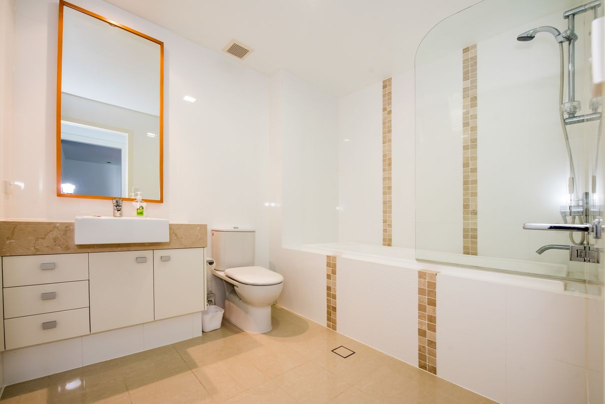 The lower level comprises of a well-appointed modern kitchen sports ample cupboards, plenty of bench space, quality stainless steel appliances and a walk-in pantry. Overlooking the expansive open-plan living and dining area equipped with ceiling fans and floor length windows allowing the lush outside greenery to seep in. Flowing through glass sliders, extending the living out to the private entertaining area. Undercover and surrounded by an immaculate lawn and landscaped gardens, it is the perfect place to enjoy a BBQ whilst basking in the serenity. High fencing adds to the tranquil atmosphere. Also for convenience, on this level, you will find a powder room and laundry servicing the downstairs.