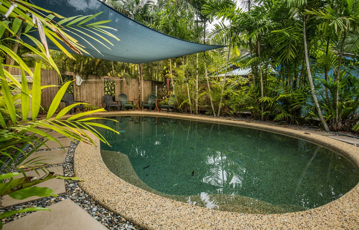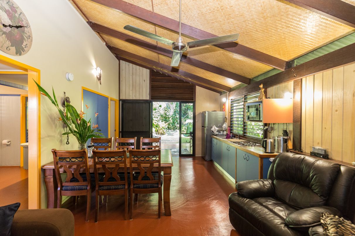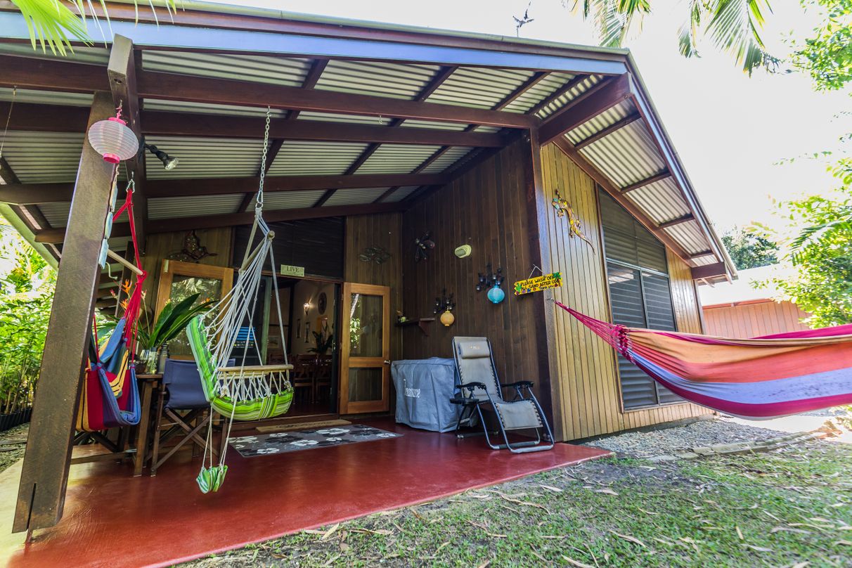 The pristine white sand of Wongaling Beach is just a short stroll through rainforest from this absolute beachfront bungalow. One of 6 private detached townhouses set in manicured lush tropical gardens, your only distractions will be the birds and butterflys. When you are not beachcombing you can relax by the pool, all the restaurants, shops and amenities of Wongaling Beach are within walking distance. Wongaling Beach is one of the closest stepping off points to the Great Barrier reef and Dunk Island and the Family group of islands are waiting to be explored. Airy and cool this tropically designed bungalow has ceiling fans throughout and is being sold fully furnished, ready for immediate use as holiday accommodation or permanent letting.