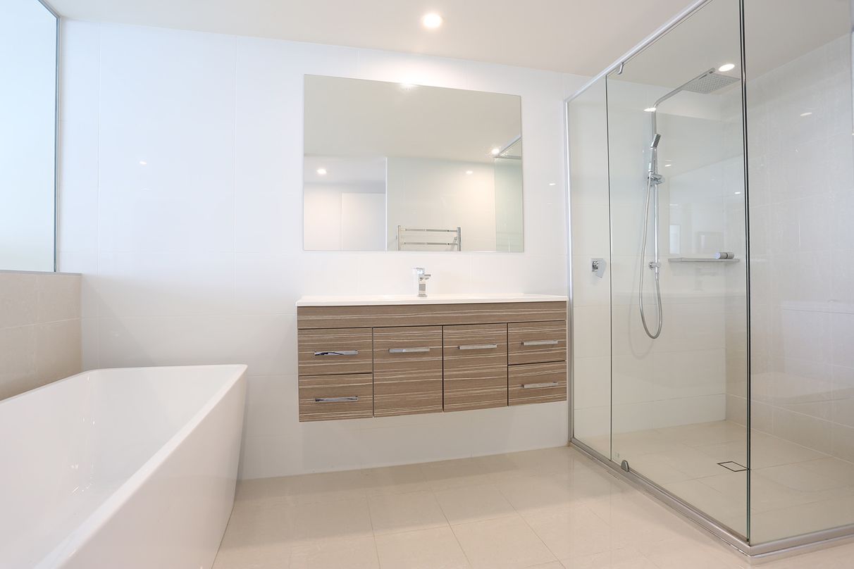 Floor-to-ceiling windows attracting abundant natural light and fabulous entertaining including a huge curved balcony with views. Three generous bedrooms with robes and fans, two bathrooms and an excellent laundry with generous bench/storage. Impressive master suite comprises a huge walk-in dressing room, private balcony and a window through to the stunning ensuite with freestanding bathtub, oversized shower and wall-mounted vanity.