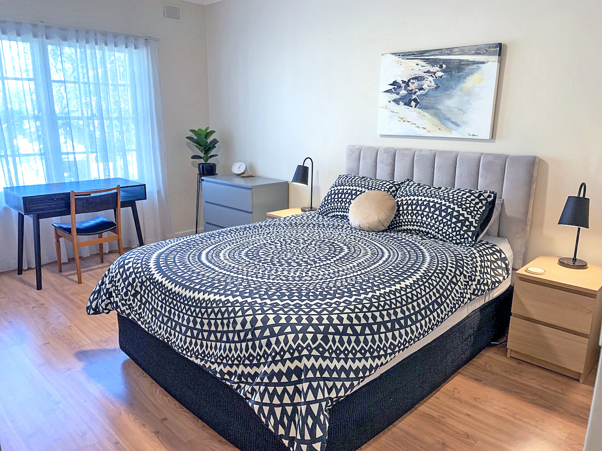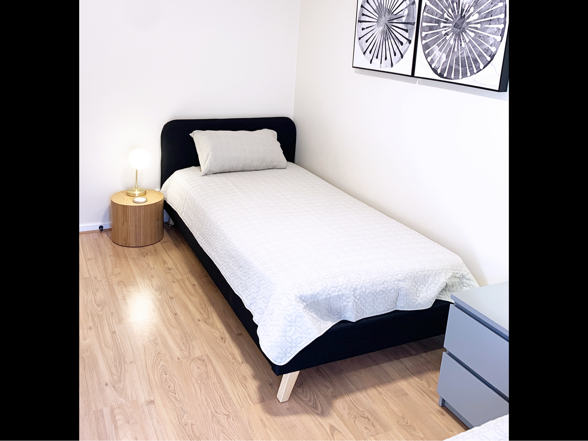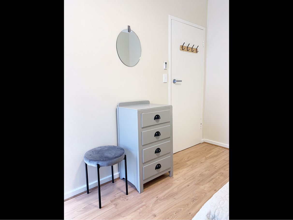 The main bedroom is a great size, and has a built-in wardrobe + room for further storage. The second bedroom can fit 2 single beds, or would make a great study.