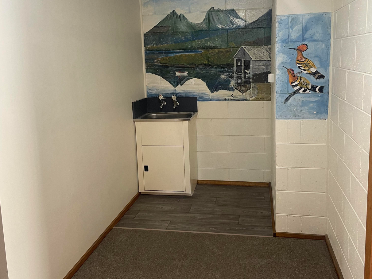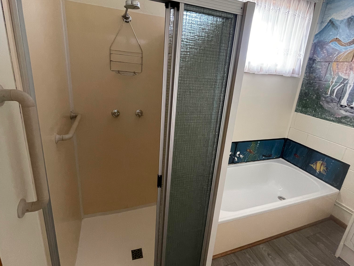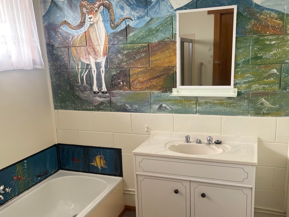 A unique feature of the unit are the murals in the bathroom and laundry, and with level access throughout, and car-parking directly adjacent to the front door/entry, this property is, hence, ideally suited for those with mobility difficulties/issues.