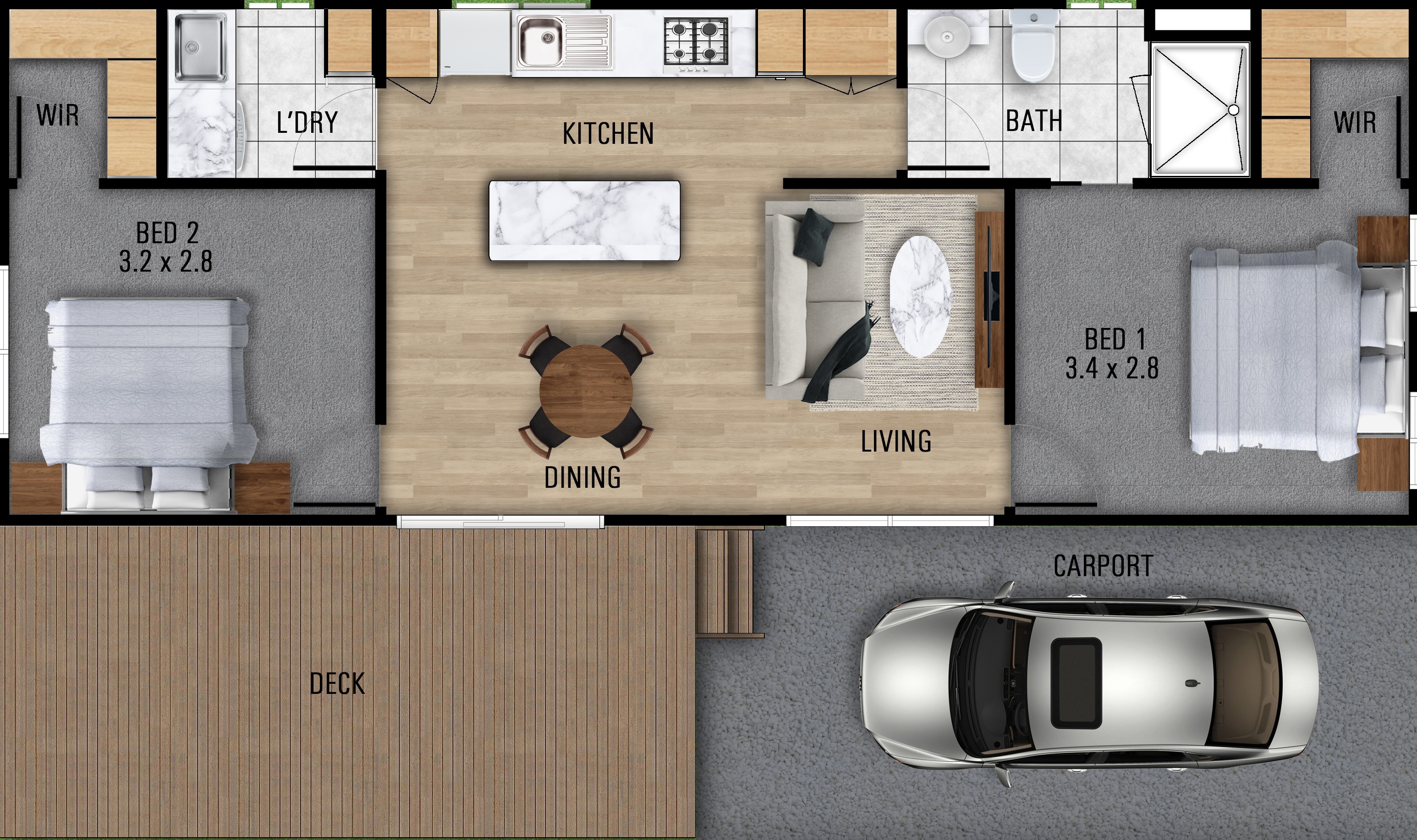 Outside you will love the large outdoor deck, the covered carport, and there is also space for your own small garden.