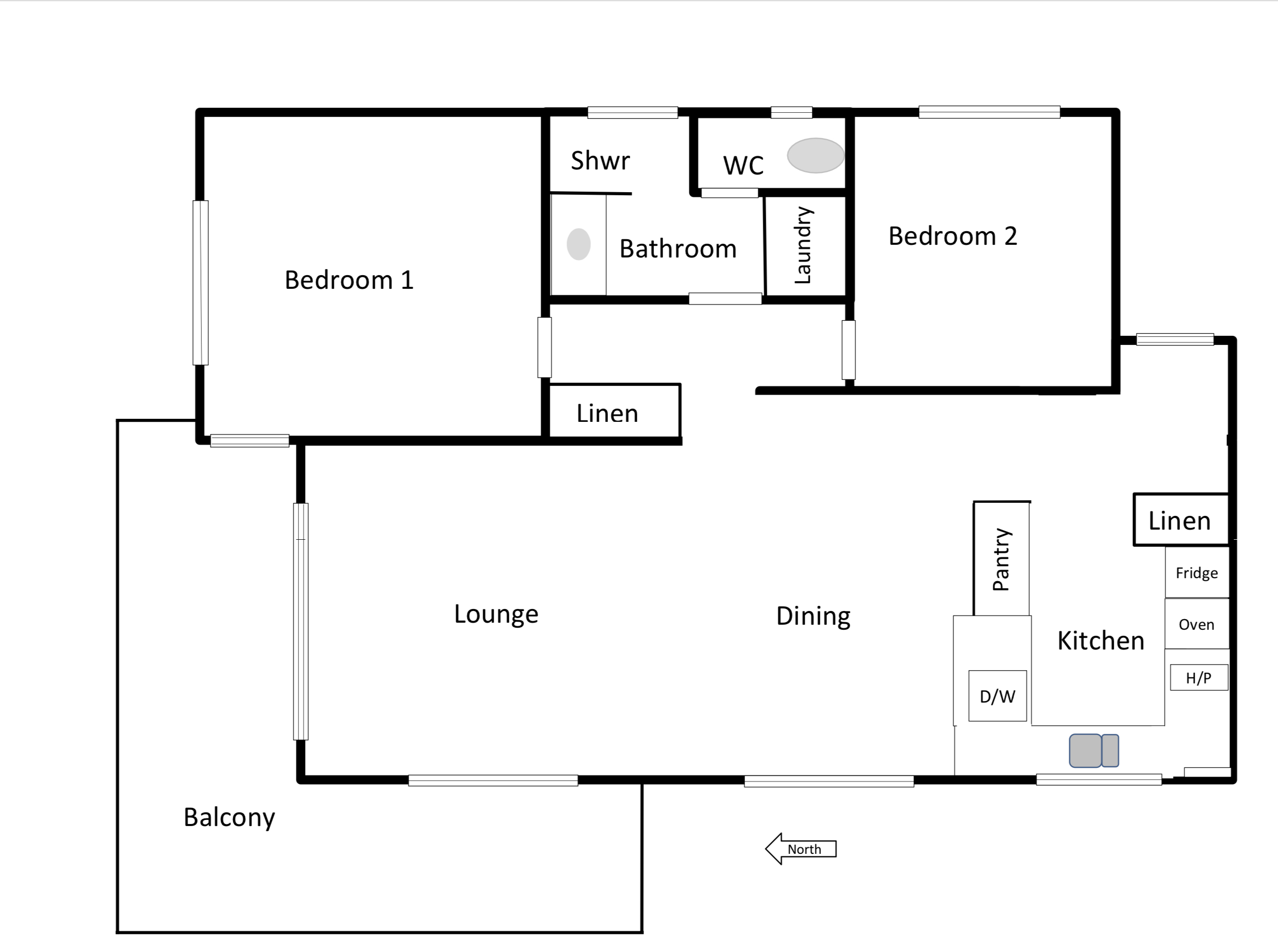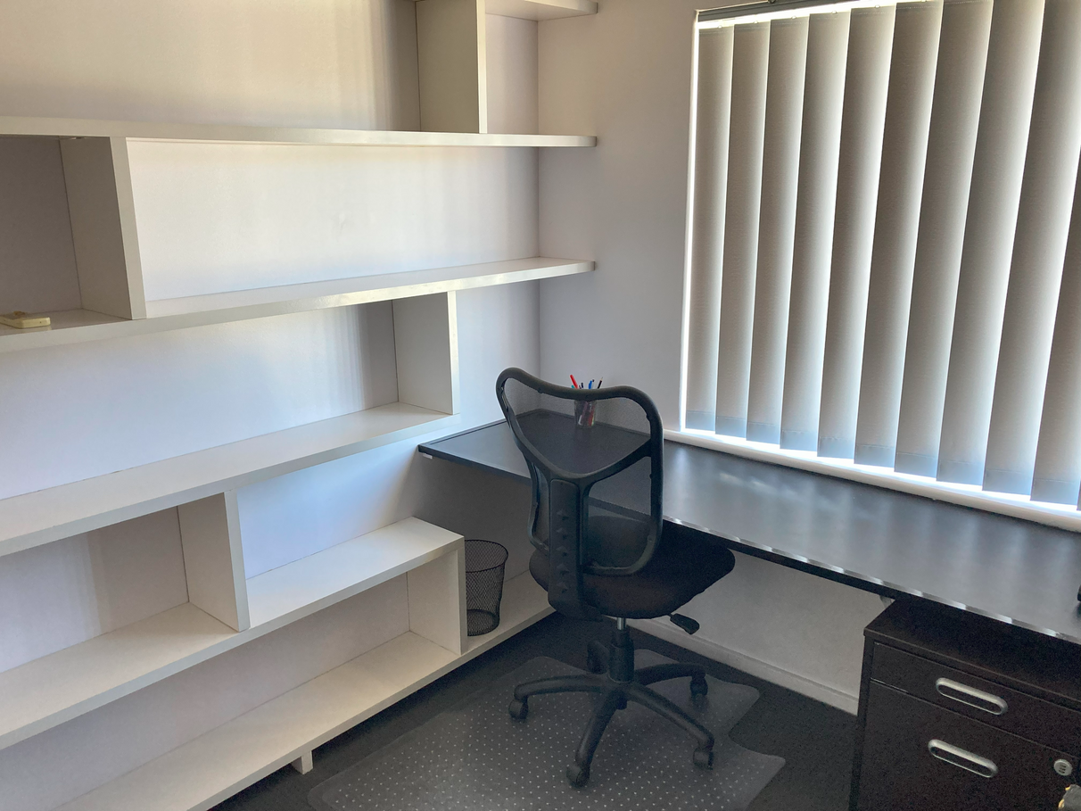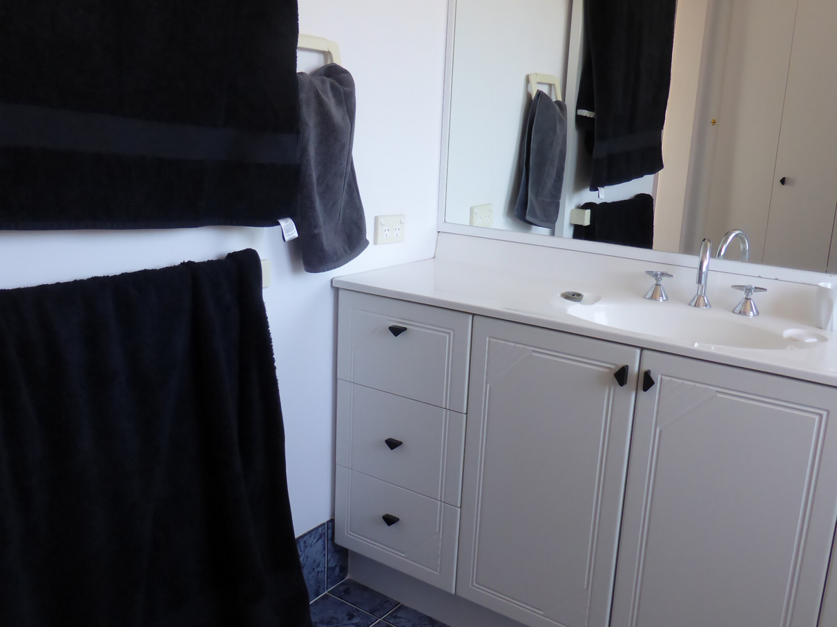 Bedroom 1 has a queen bed and built in robes and drawers. Bedroom 2 is equipped as an office and has a sofa bed for occasional guests.