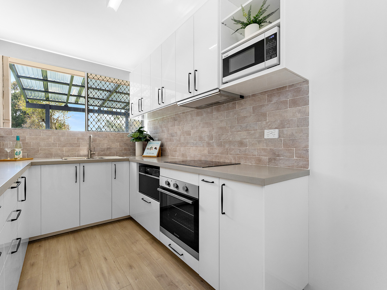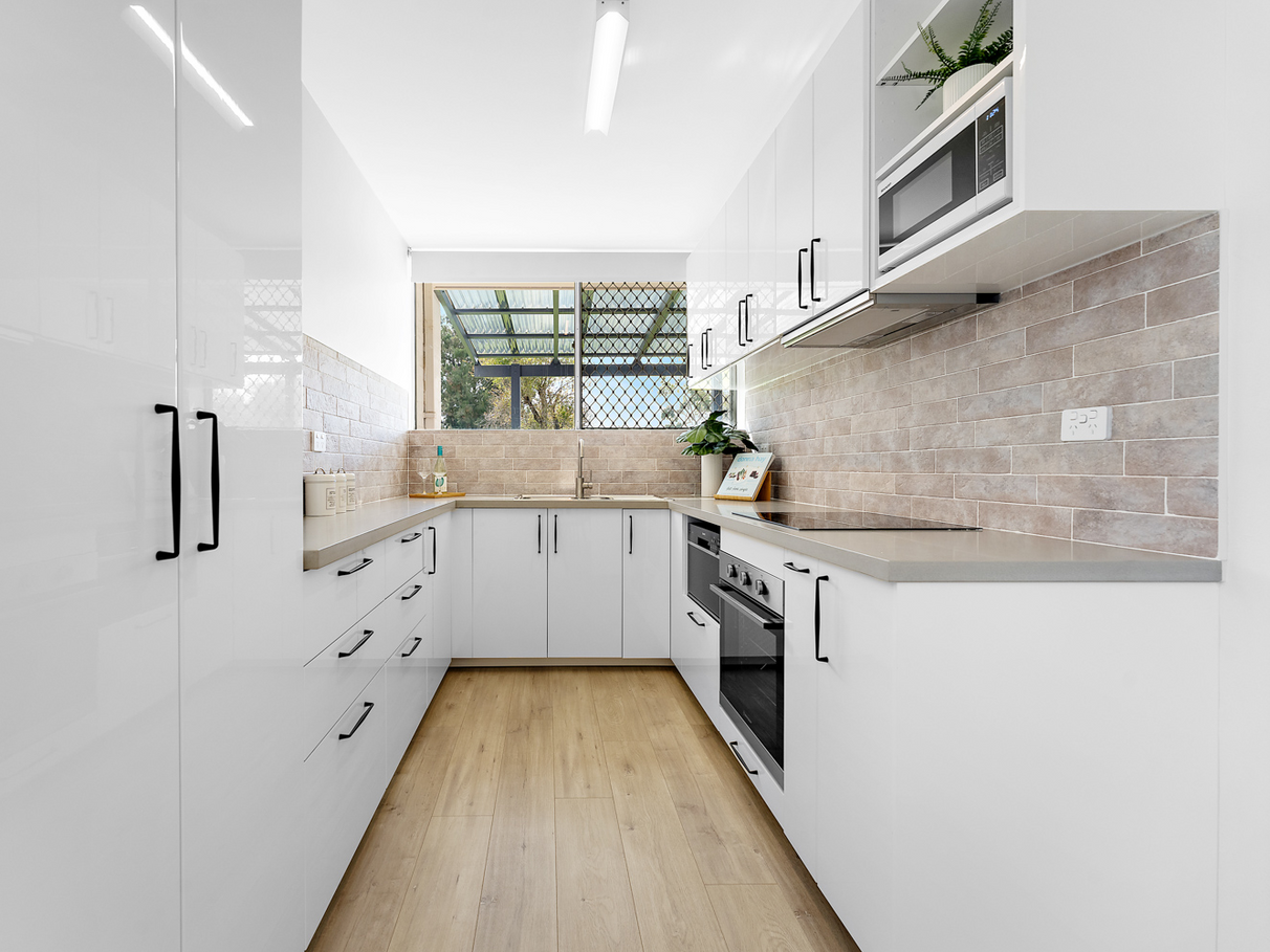 The generous sized, modern kitchen includes stone benchtops and brand new appliances, including dishwasher and microwave included in the sale.