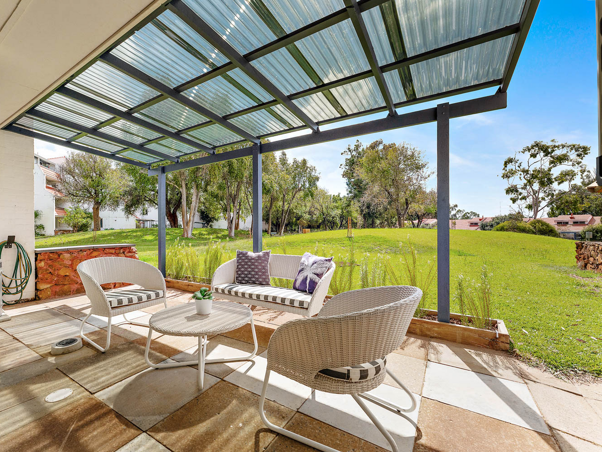 Large windows and sliding door pour natural light into the open plan living / dining area. Complete with reverse cycle air-conditioning and opening onto a covered alfresco area and views of the leafy parkland, perfect for entertaining.