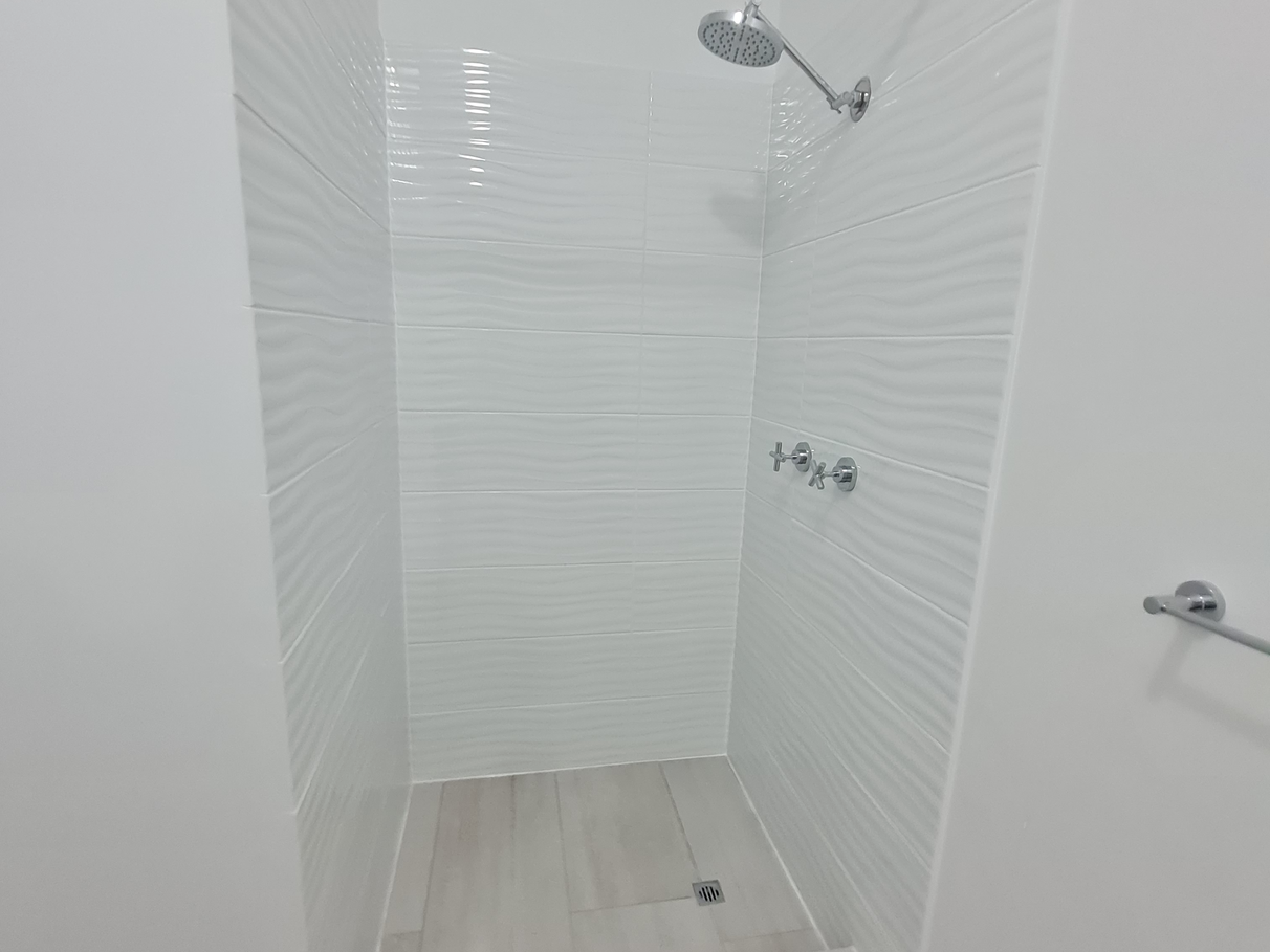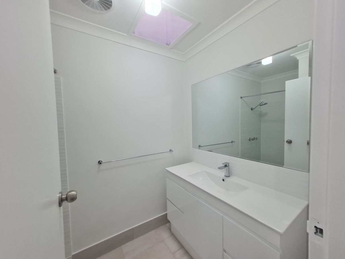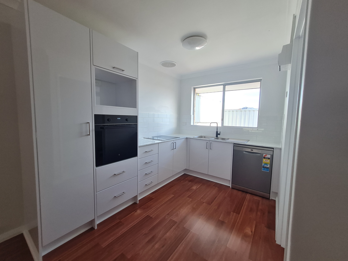 With modernised décor throughout, the home features a generous sized front lounge room with wood laminate flooring and split system reverse cycle air conditioning. The dining area sits adjacent to the renovated kitchen which boasts white gloss soft closing doors, postformed benchtops, new appliances that includes a 4 burner induction cooktop, oven, dishwasher and double bowl sink with lovely subway tile splashback and black accents.