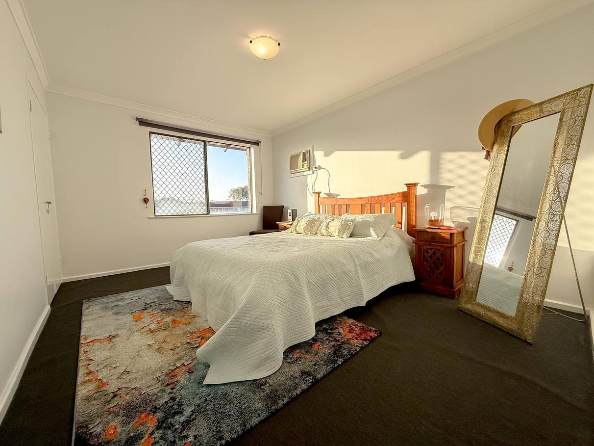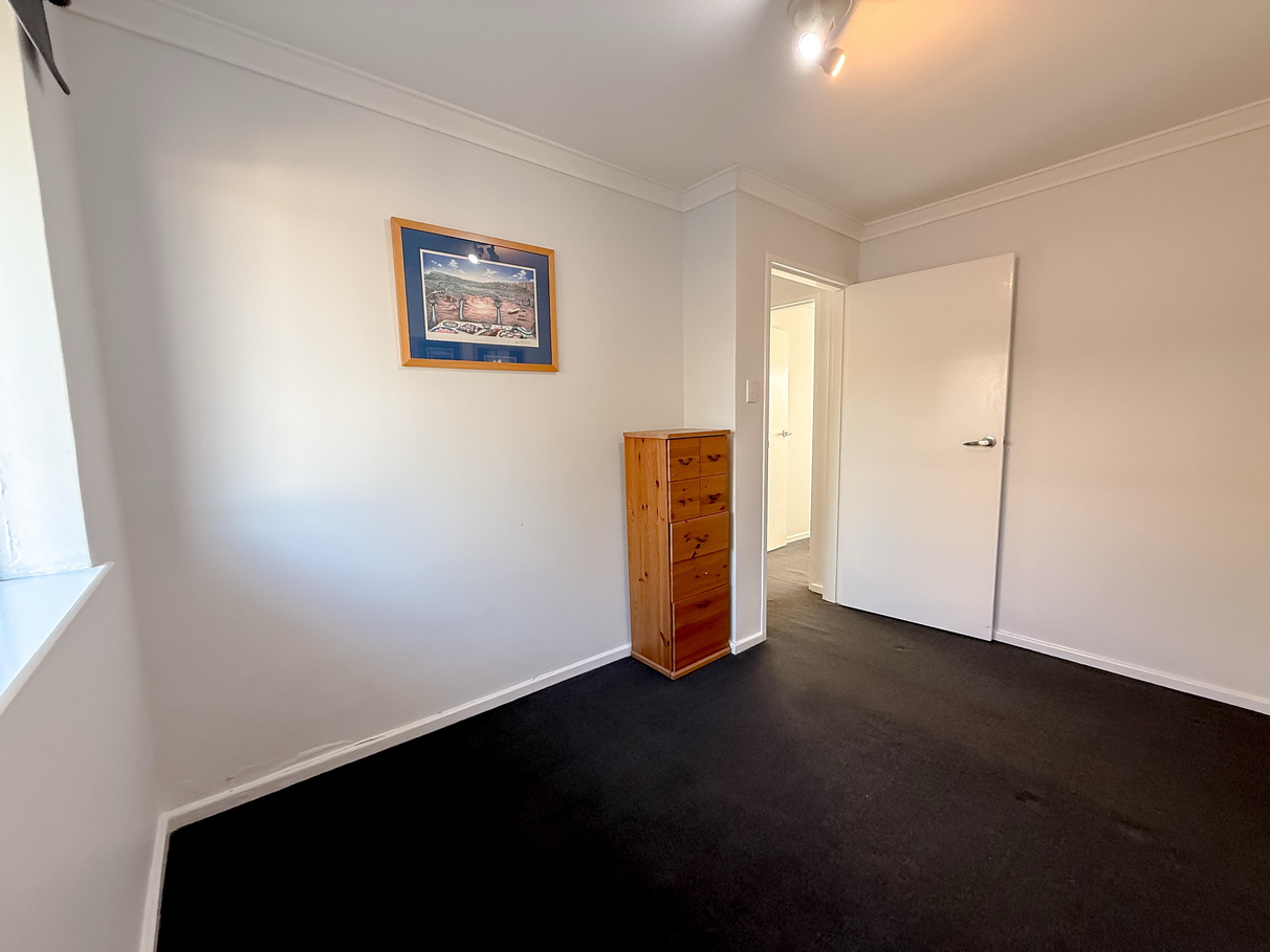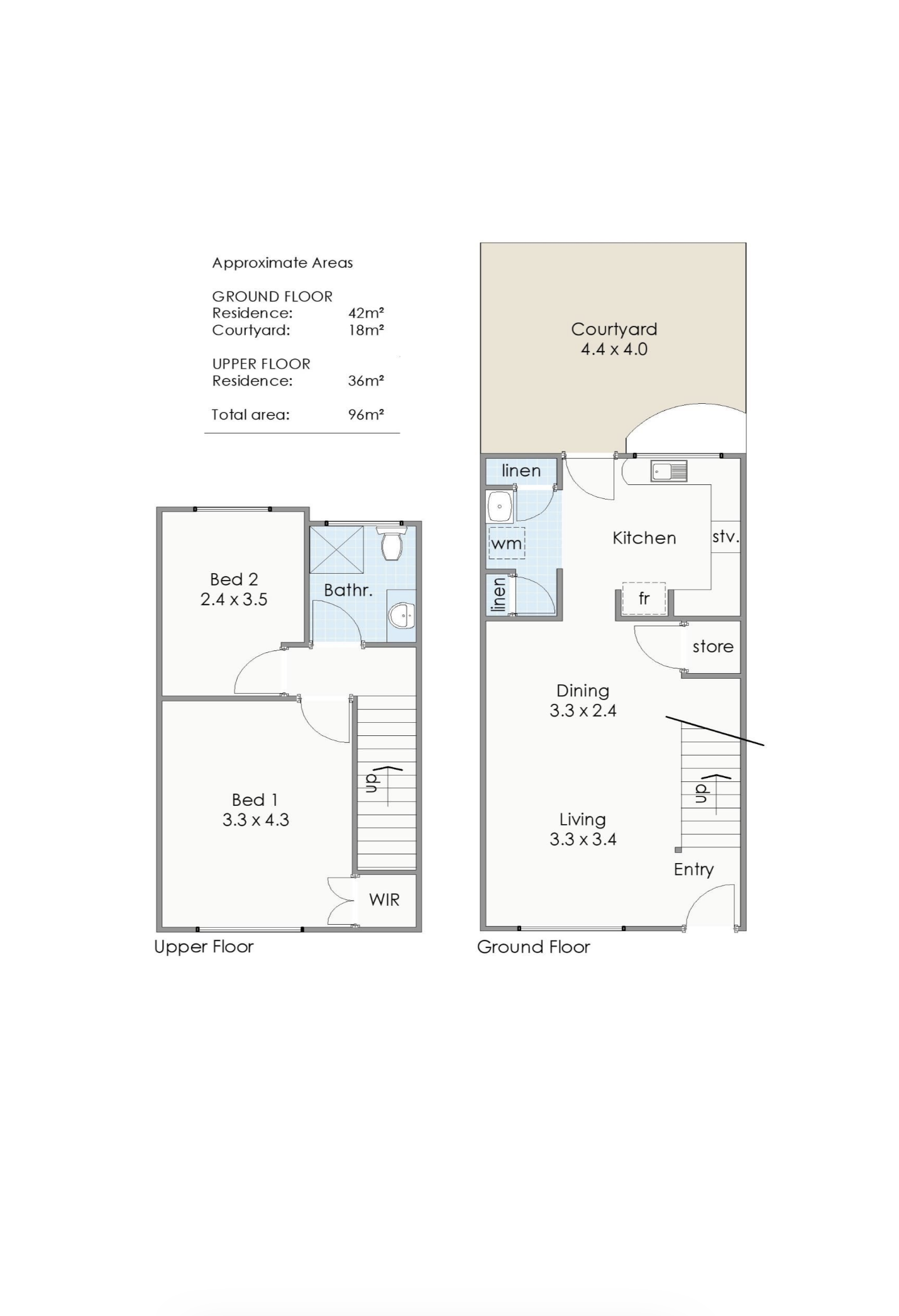 Downstairs features an open-plan living space with reverse cycle air conditioning, a spacious kitchen, and a low-maintenance private rear courtyard ideal for entertaining. Upstairs, the oversized master bedroom easily fits a king-sized bed with built-in robes and air conditioning, while the second bedroom fits a double bed with side table. A well-proportioned bathroom completes the upper floor.