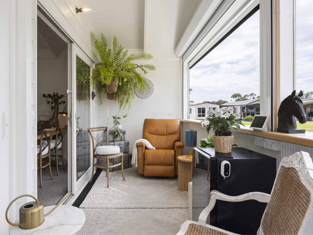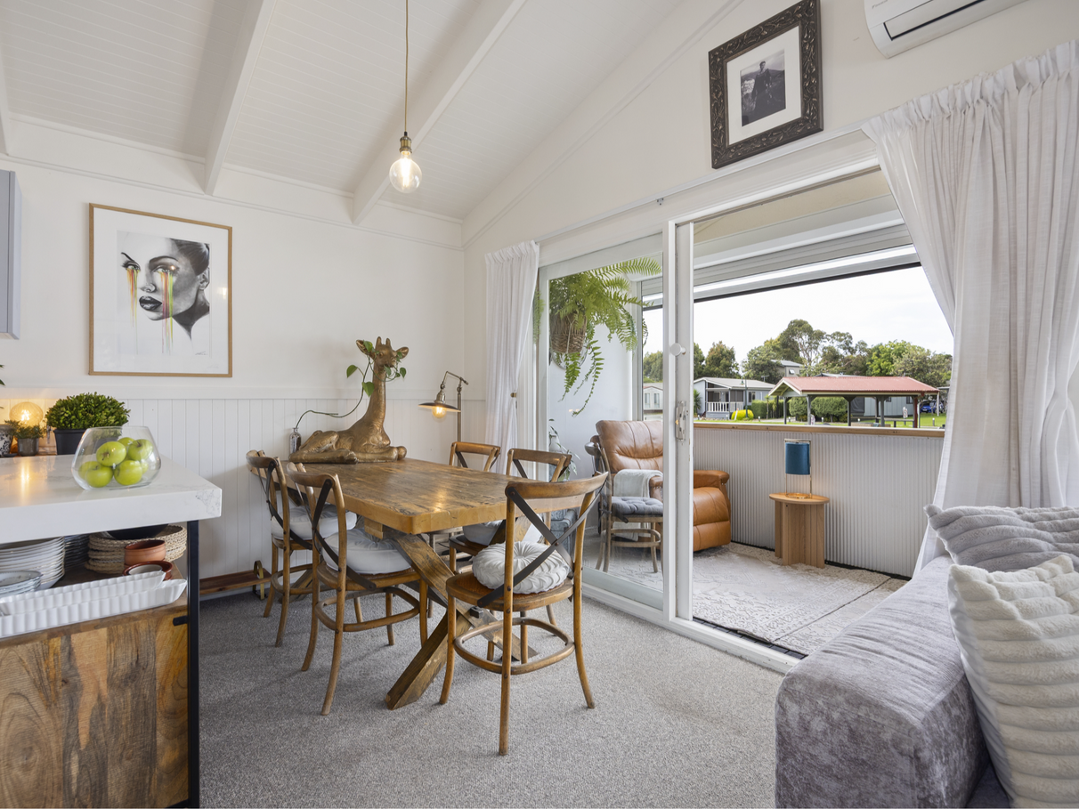 The cottage is positioned on a quiet no-through road, ensuring privacy and calm, while two large windows invite warm morning sunlight — making this one of the brightest and most naturally lit homes in the community.
